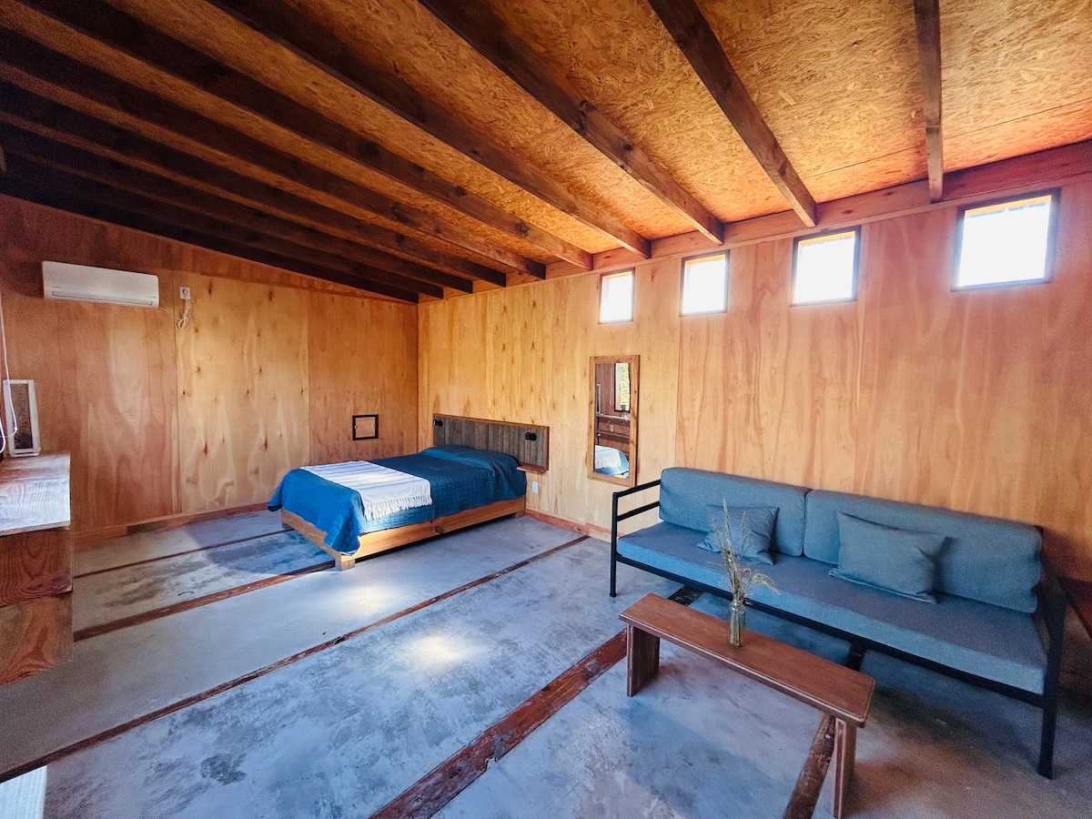 Ciepły drewniany dom na dwóch piętrach na plaży w Punta Rubia, spokojna okolica na wydmach i kilka metrów od morza. La Pedrera 1 km, Cabo Polonio 37 km. Obiecana plaża! Dom posiada salon, zintegrowaną kuchnię i łazienkę. Na pierwszym piętrze znajdują się 2 sypialnie. Jedna z łóżkiem małżeńskim, z wyjściem na taras widoczny na zdjęciu, a druga z łóżkiem pojedynczym i dwoma fotelami. Istnieje również możliwość przekształcenia fotela w saloniku w łóżko. Grill na zewnątrz. Baw się dobrze!