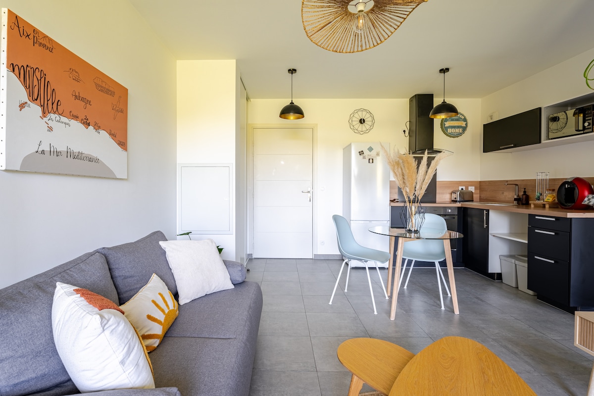 Nowy apartament położony w Aubagne w małej, bardzo spokojnej dzielnicy z bezpośrednim dostępem do wzgórza. Mieszkanie zostało zaprojektowane tak, aby było bardzo funkcjonalne, z tarasem. Dostęp do Cassis, La Ciotat i jego plaż, Marsylii i Aix en Provence, aby odkryć region, jest szybki. Tramwaj i autobus (bezpłatne) znajdują się w odległości 2 kroków od dzielnicy, co pozwala szybko dotrzeć do centrum Aubagne na piechotę.