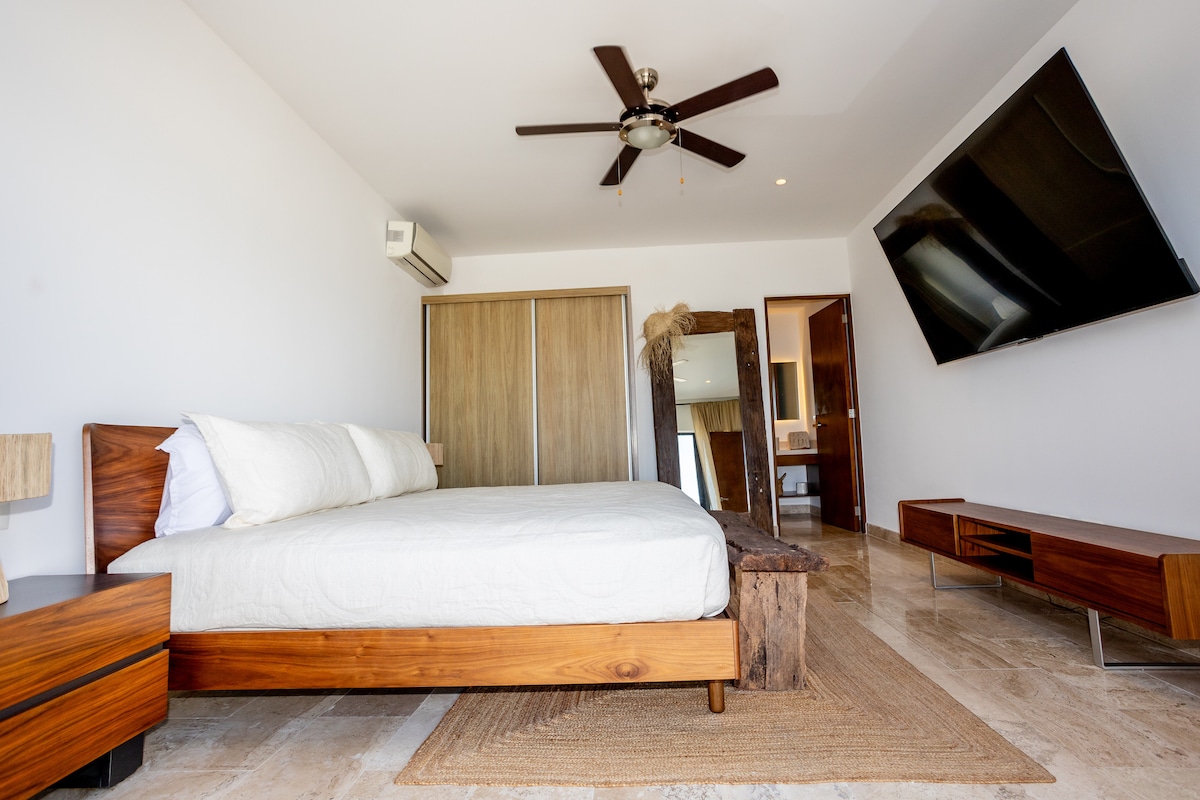 Ręcznie wykonany karaibski styl w tropikach, subtelnie owinięty w białe wahadłowce. Efekt życia w miejscu o takiej wyjątkowości i dbałości to różnica w tym, co sprawia, że wakacje są wspaniałe! Natychmiast poczujesz się wciągnięty w karaibską atmosferę. Apartament posiada detale wykonane przez lokalnych rzemieślników. Kolorowe płytki podłogowe zostały wypolerowane do perfekcji na miejscu. Bambusowe łóżko z baldachimem z Veracruz wyróżnia sypialnię, a okna z białymi okiennicami otaczają apartament.