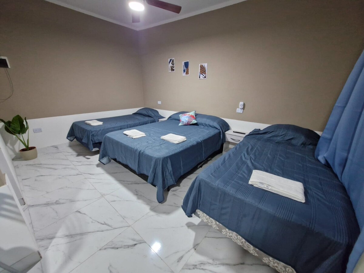 Cama matrimonial y dos camas adicionales individuales. Dividido en dos ambientes + baño y antebaño. TV Led con servicio satelital WiFi Aire acondicionado Panel de calefacción Pava eléctrica Vajillas Mesa y sillas Heladera Microondas Secador de cabello. Tender en exterior. ----NO TIENE ANAFES