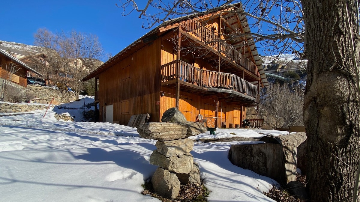 Nasze piękne mieszkanie znajduje się w Argentière-la-Bessée, bardzo pięknej wiosce u bram Parku Narodowego Ecrins. Znajdujemy się w małej, zacisznej i spokojnej wiosce, typowej i pełnej uroku ^^ (ulice dla pieszych przed apartamentem) Przytulne mieszkanie, wyposażona kuchnia, ładna łazienka, przytulny salon i drewniany taras. _WIFI_ 1 łóżko małżeńskie na antresoli i 1 łóżko rozkładane, bardzo dobre materace dla 2 osób, w salonie. Wejście do apartamentu niezależne. (mieszkanie dla NIEPALENIA)