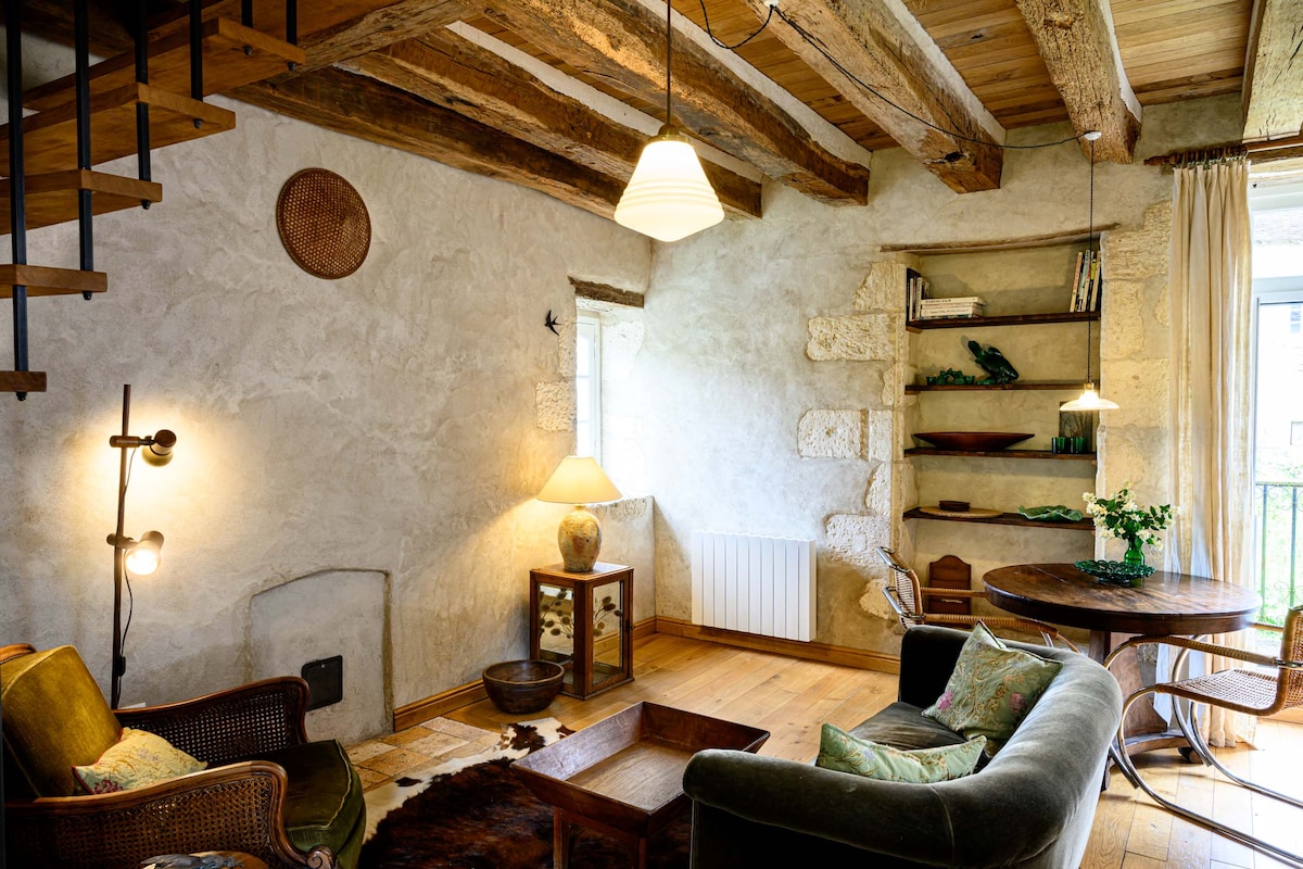 Położona w samym sercu Domaine de la Plante, ta dawna wartownia Château de Thuré oferuje zapierające dech w piersiach widoki na ponad 50 km. Na zewnątrz zalesiony ogród i taras zachęcają do relaksu, a w tle widać niezwykłe jaskinie gallo-rzymskie.