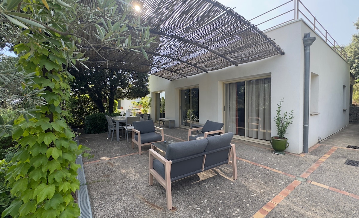 „La Maison aux Oliviers” to mały, urokliwy, klimatyzowany, niezależny dom o powierzchni 90 m2, położony na terenie starej gaju oliwnego, w spokojnej okolicy, w ogrodzie krajobrazowym z pięknym, ogrzewanym i zabezpieczonym basenem. Duża markiza pozwala na spędzanie czasu na świeżym powietrzu, chroniąc przed słońcem i wiatrem (mistralem). W pobliżu zabytkowego centrum, lokalnego targu i sklepów (w odległości spaceru), jest doskonale wyposażony do pracy zdalnej (szybkie łącze światłowodowe)
