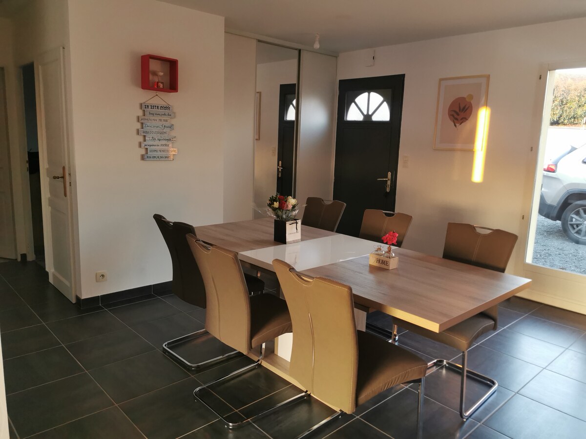 Zrelaksuj się w tym cichym i eleganckim miejscu, zaledwie 25 minut od zoo w La Flèche i 15 minut od toru wyścigowego 24h Le Mans. Dom z dużym przytulnym salonem i wyposażoną kuchnią, 2 sypialniami, 2 łazienkami i 2 toaletami dla Twojej wygody. Do dyspozycji gości jest jacuzzi. Duży, zadrzewiony ogród o powierzchni 1800 m2, w którym można się zrelaksować. Aby uzyskać więcej informacji, skontaktuj się ze mną.