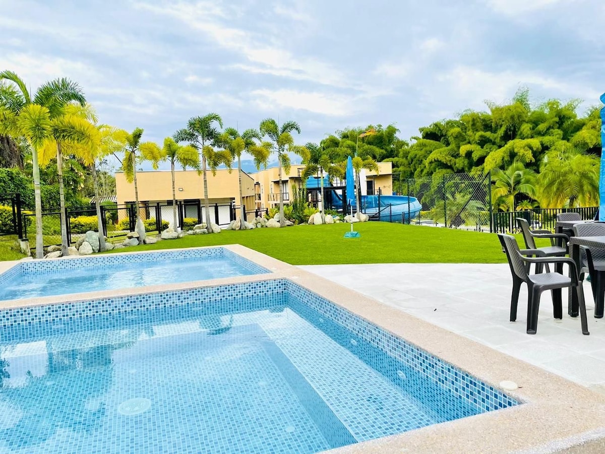 Piękny aparthotel 10 minut od lotniska El Edén i Club Campestre, 20 minut od Parque del Café. Prywatna przestrzeń z salonem, jadalnią i wyposażoną kuchnią. Idealne na wakacje lub wyjazdy sportowe. Ciesz się jacuzzi, basenami dla dorosłych i dzieci, zjeżdżalnią, grillem, telewizją satelitarną Smart, ciepłą wodą i suszarką do włosów. Cicha, komfortowa dzielnica. Zawiera klamkę wejściową, aby cieszyć się wszystkimi wspólnymi obszarami! Wi-Fi-win sport+-kanały sportowe--
