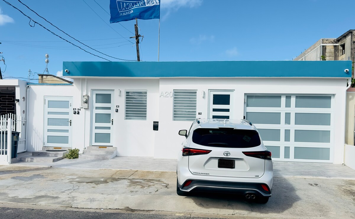 Piękna i nowoczesna przestrzeń, idealna dla pary lub grupy czterech osób. Strategicznie położone pięć minut od lotniska i 10 minut od San Juan. Przyjedź do Portoryko i ciesz się plażami, jego mieszkańcami i wieloma innymi atrakcjami. Apartament składa się z salonu z rozkładaną sofą typu queen size, pięknego pokoju z łóżkiem typu queen size, dwóch klimatyzatorów, dwóch telewizorów i pięknej, nowoczesnej kuchni ze wszystkimi przyborami do gotowania, prywatnego parkingu i balkonu do wspólnego użytku z rodziną.
