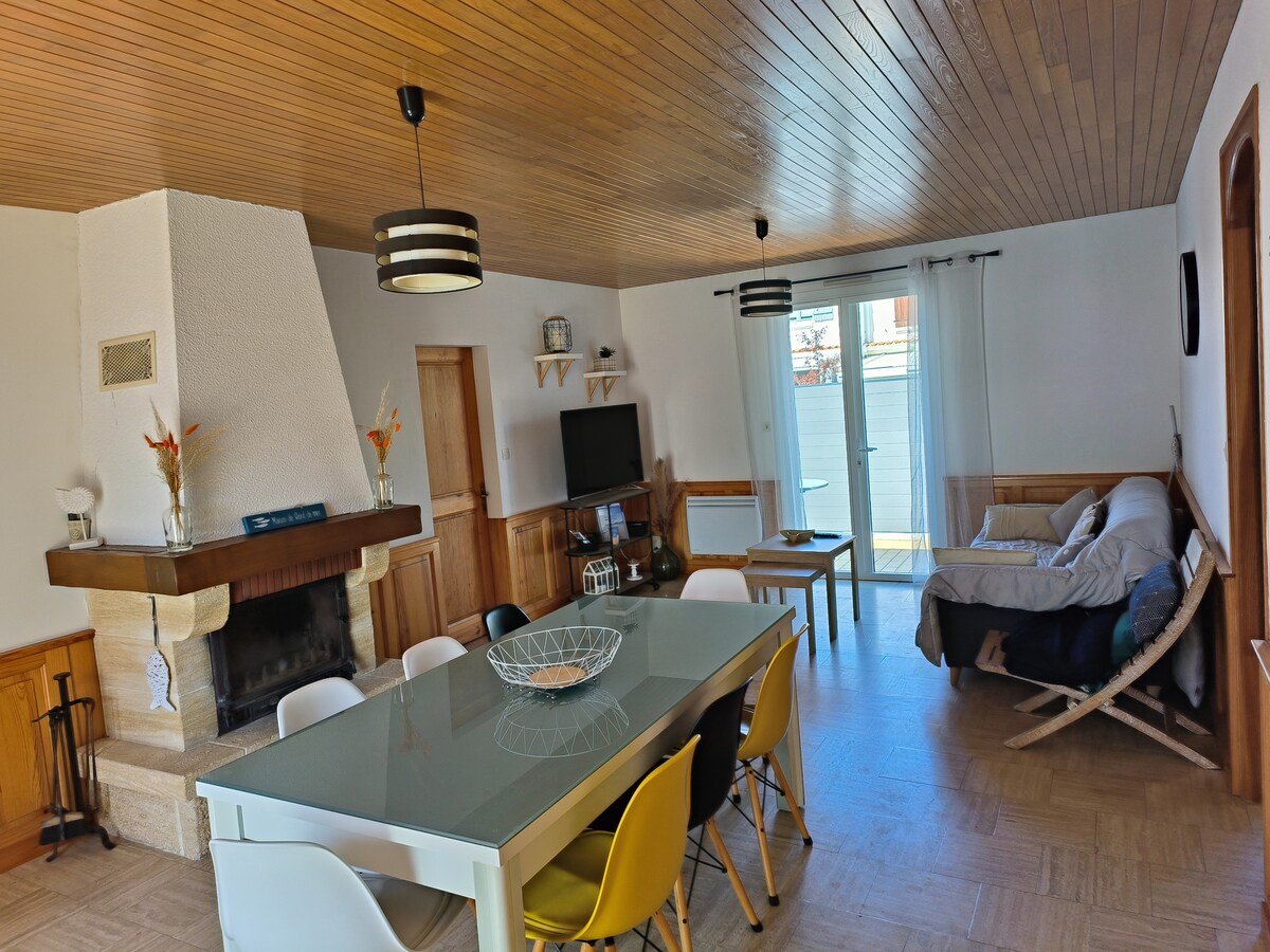 Dom idealnie położony w hipercentrum w pobliżu wszystkich sklepów i centralnej plaży na wakacje na piechotę. Dom na piętrze (bezpieczne schody) z 3 sypialniami (3 podwójne łóżka z prześcieradłami), kuchnią otwartą na jadalnię i salon, balkon z grillem, łazienką (w tym ręczniki) z wanną i 1 toaletą. Spiżarnia na parterze do przechowywania rowerów, desek... 1 bezpłatne miejsce parkingowe przed domem. Darmowe Wi-Fi. Zwierzęta niedozwolone.