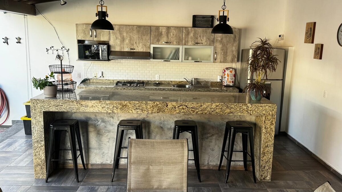 Ubicado a pocos minutos de la zona arqueológica los Guachimontones nuestra casa cuenta con cochera segura, un dormitorio un baño en interior y otro en la parte exterior. Es tu capada perfecta para disfrutar Decorada con un gusto modernos nuestra casa espaciosa y abierta tiene todo lo que necesitas para divertirte con todo tu grupo. Relájate en una hermosa caminata por el sendero junto a un precioso rio o visita nuestras tiendas artesanales y restaurantes locales en el pueblo de Teuchitlan.