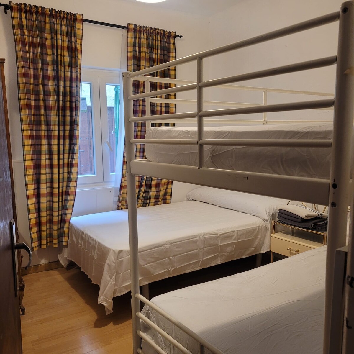 Nasz dom rodzinny jest w pełni wyposażone.Położony na parterze ma 65 m2 rozłożone w 2 sypialnie, jeden z łóżkiem 1,50 i inny z 2 łóżkami 0,90, pokój dzienny TV sofa z szezlongiem, kuchnia z kuchenką mikrofalową,ceramiczna płyta grzejna, lodówka, stół, łazienka, centralne ogrzewanie, klimatyzacja i ganek.Duży teren zielony wokół całego domu.Pojemność jest 4 osób, dopuszcza 1 dodatkowe łóżko 20€/dzień i rozkładaną sofą 11€/dzień/osoba,maksymalnie 6 osób