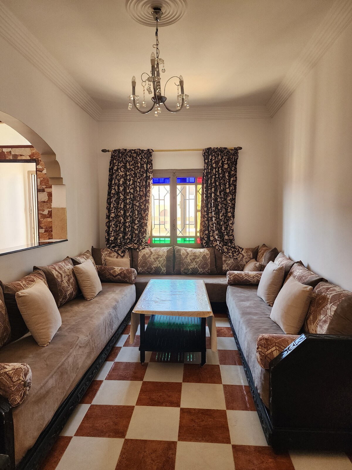 •Bienvenue dans cet appartement moderne et confortable à Laâyoune. 2 chambres, salon cosy, salon marocain, cuisine équipée, 2 salles de bain — idéal pour un séjour agréable.