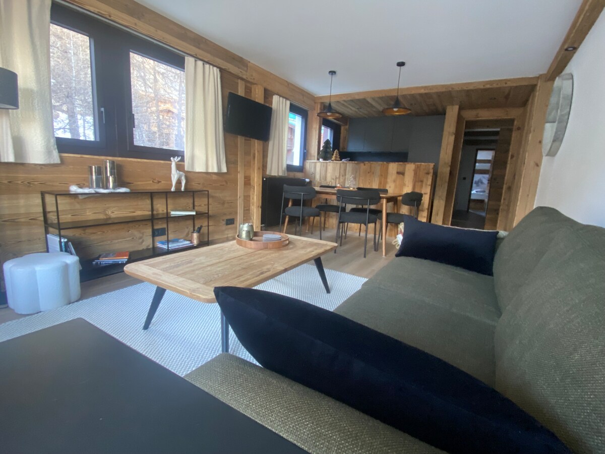 Arc 1950 luksusowy domek w stylu górskim dla 5/7 osób z nartami na nogach
