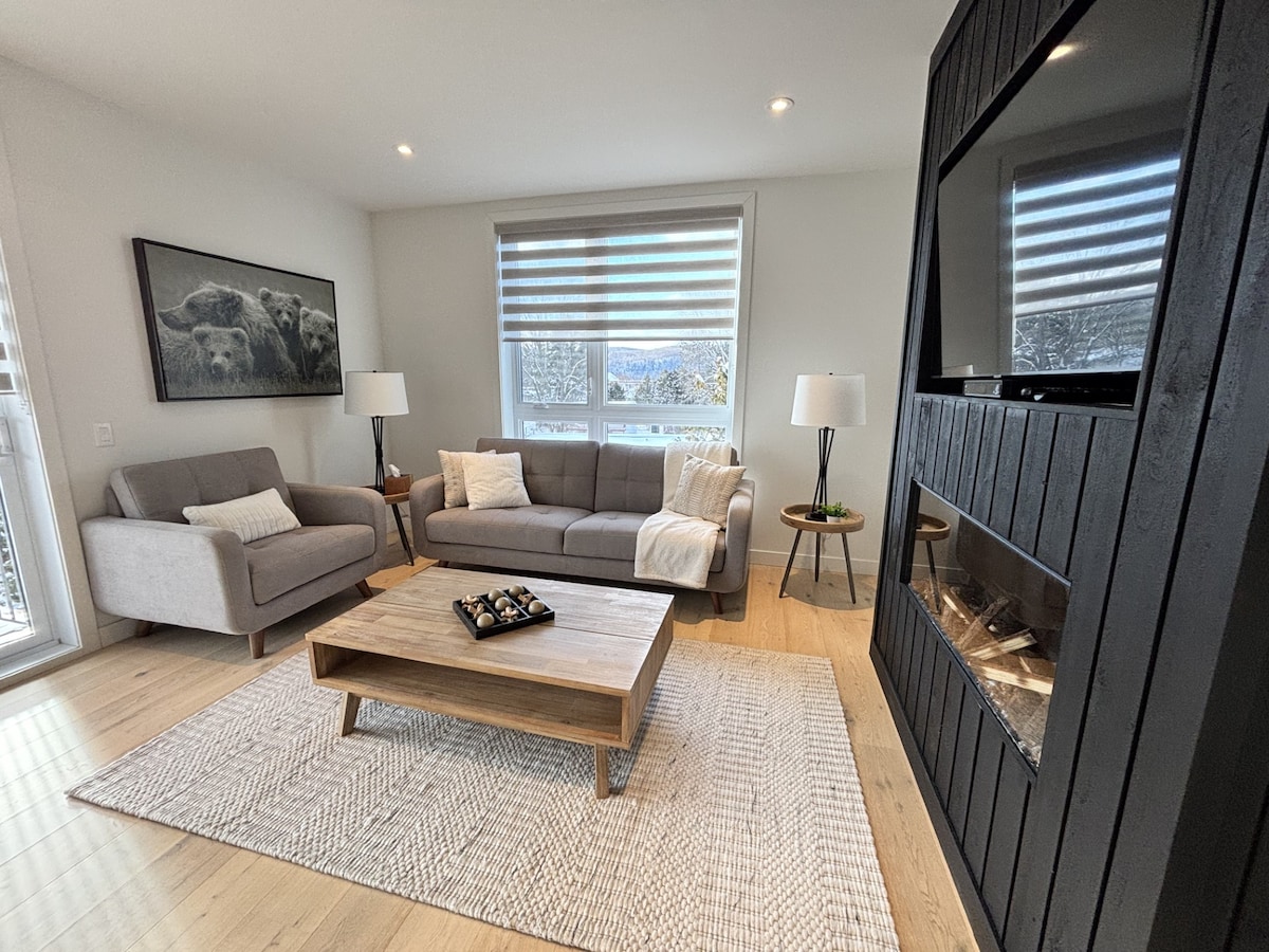 Witamy w naszym uroczym 380-metrowym apartamencie, idealnym miejscem na zwiedzanie Mont-Tremblant i przygody na świeżym powietrzu; 5 minut spacerem od centrum ośrodka/wyciągu narciarskiego! Ta w pełni wyposażona przestrzeń wyposażona jest w kuchenkę, kuchenkę mikrofalową, lodówkę i inteligentny telewizor z dostępem do Netflix ( Twoje konto). Ciesz się bezproblemowym i szybkim dostępem do Internetu dzięki bezpłatnemu Wi-Fi. Stwórz idealny nastrój dzięki elektrycznemu kominkowi i ciesz się chwilami na świeżym powietrzu dzięki grillowi, przytulnemu stołowi i czterem krzesłom.