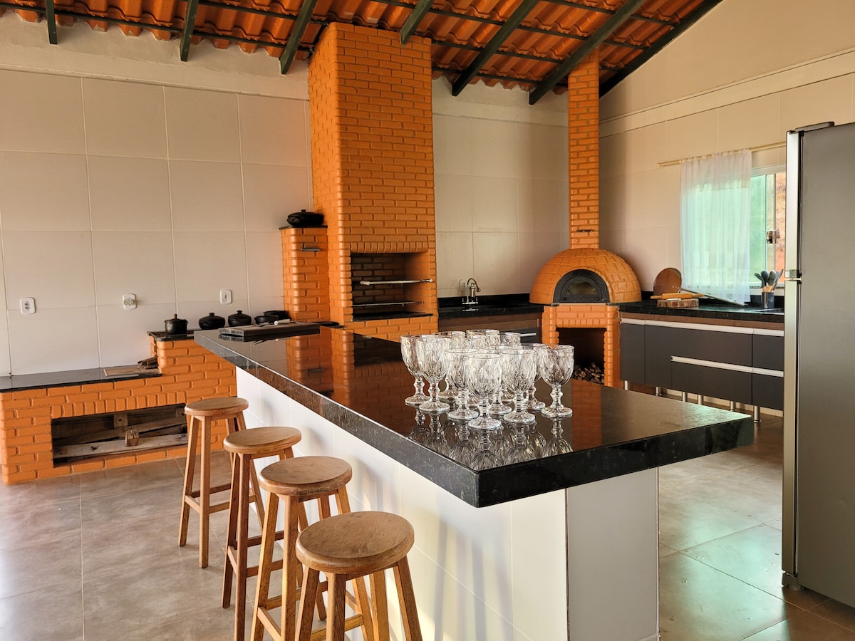 Proste ranczo w apartamencie, w pobliżu jeziora Corumbá IV, idealne na relaks z rodziną lub przyjaciółmi. Posiada podgrzewany basen, grill, zmywarkę i przestronną przestrzeń na zewnątrz. 📍20 km drogi gruntowej 🔇Samochód bez dźwięku 🎵 Muzyka tylko na średnim poziomie głośności, nasz basen jest już wyposażony w głośniki. Ranczo może pomieścić 14 osób, idealne dla rodzin i grup przyjaciół. 🐾 Akceptujemy zwierzęta, pamiętaj, aby uwzględnić je w rezerwacji, obowiązuje opłata.