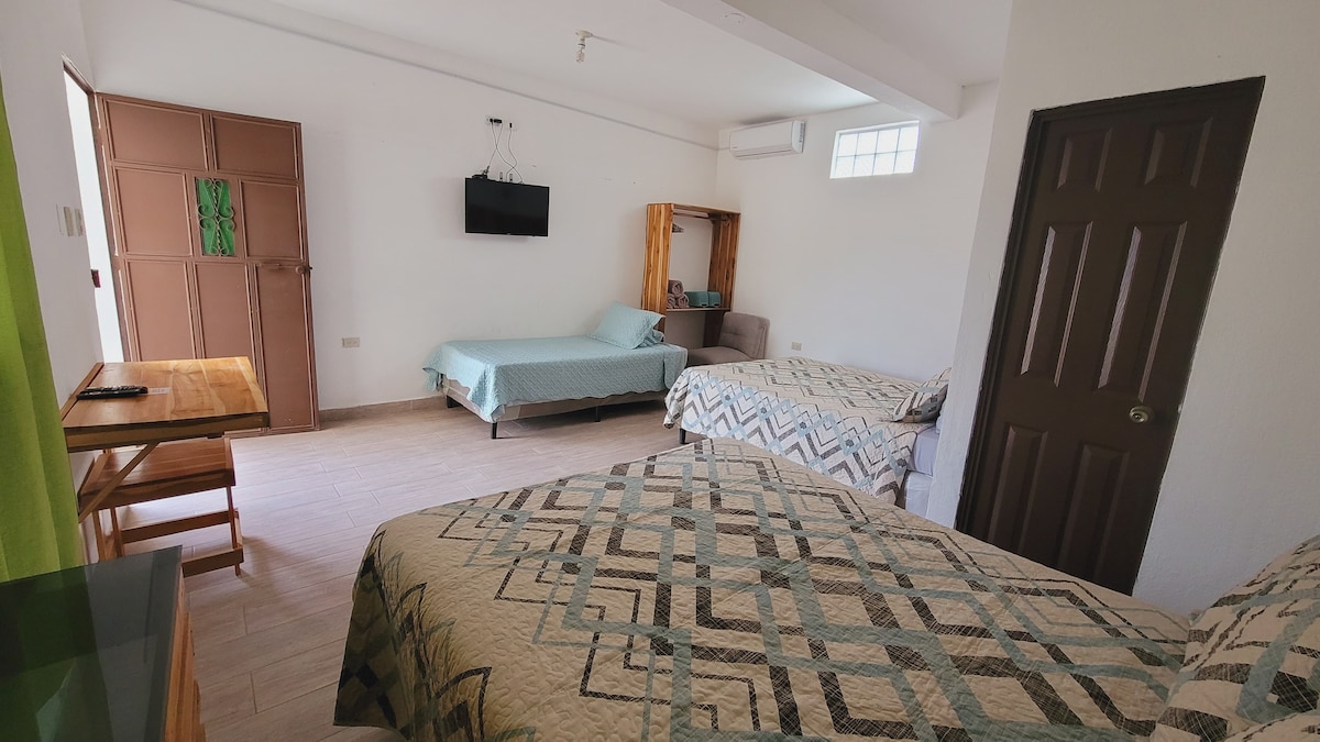 Twoja rodzina będzie blisko wszystkiego podczas pobytu w tym centralnie położonym miejscu. Jesteśmy 5 minut od międzynarodowego lotniska Mundo Maya i 6 minut od wyspy Flores. Ponadto wszystkie centra handlowe w centrum Flores i San Benito znajdują się bardzo blisko nas. Nasz dom ma 4 sypialnie, 2 łazienki, wydajną i w pełni wyposażoną kuchnię oraz przytulny salon. • Pralka i suszarka • 4 prywatne miejsca parkingowe •Wi-Fi • 1 telewizor Smart TV • Wygodne łóżka • Usługa nadzoru