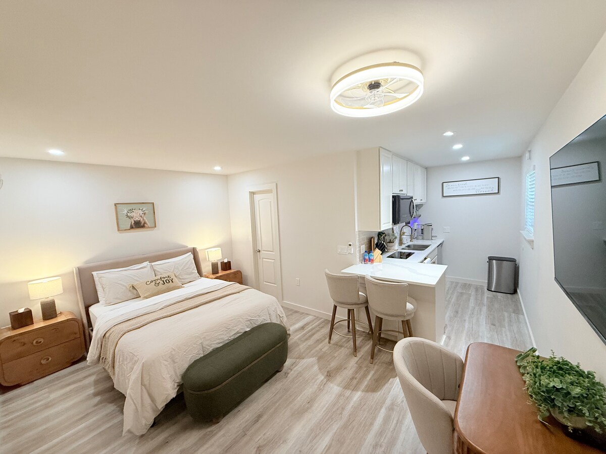 Zrelaksuj się w tym wyjątkowym i spokojnym miejscu położonym wśród drzew w pięknej miejscowości Lago Vista. Obudź się na widok wędrujących jeleni i ciesz się spokojem kilka minut od jeziora Travis. Ta prywatna przestrzeń dla gości ma oddzielne wejście, przytulne patio na poranną kawę lub wieczorne wino oraz zarezerwowane miejsce parkingowe tylko dla Ciebie. Niezależnie od tego, czy jesteś tutaj, aby odkryć jezioro, wędrować po pobliskich szlakach, czy po prostu odpocząć, ten spokojny zakątek jest idealną bazą wypadową.
