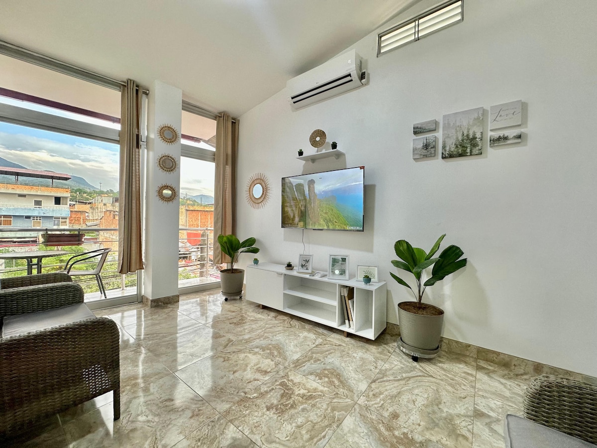 To piętro jest przeznaczone dla singla lub pary. Znajduje się na 4 piętrze budynku mieszkalnego. Posiada mały taras, a poniżej budynku znajduje się Café Runa, które jest jak posiadanie własnej kawy, jest wszystko, czego potrzebujesz w pobliżu mięsa, bodegas, likierów i aptek; klasyczne wypchane riuritos, Gimnasio Prime, a nawet notariusz. Znajdziesz w nim wszystkie podstawowe udogodnienia . Klimatyzacja, skórzana sofa, kompletny zestaw mebli