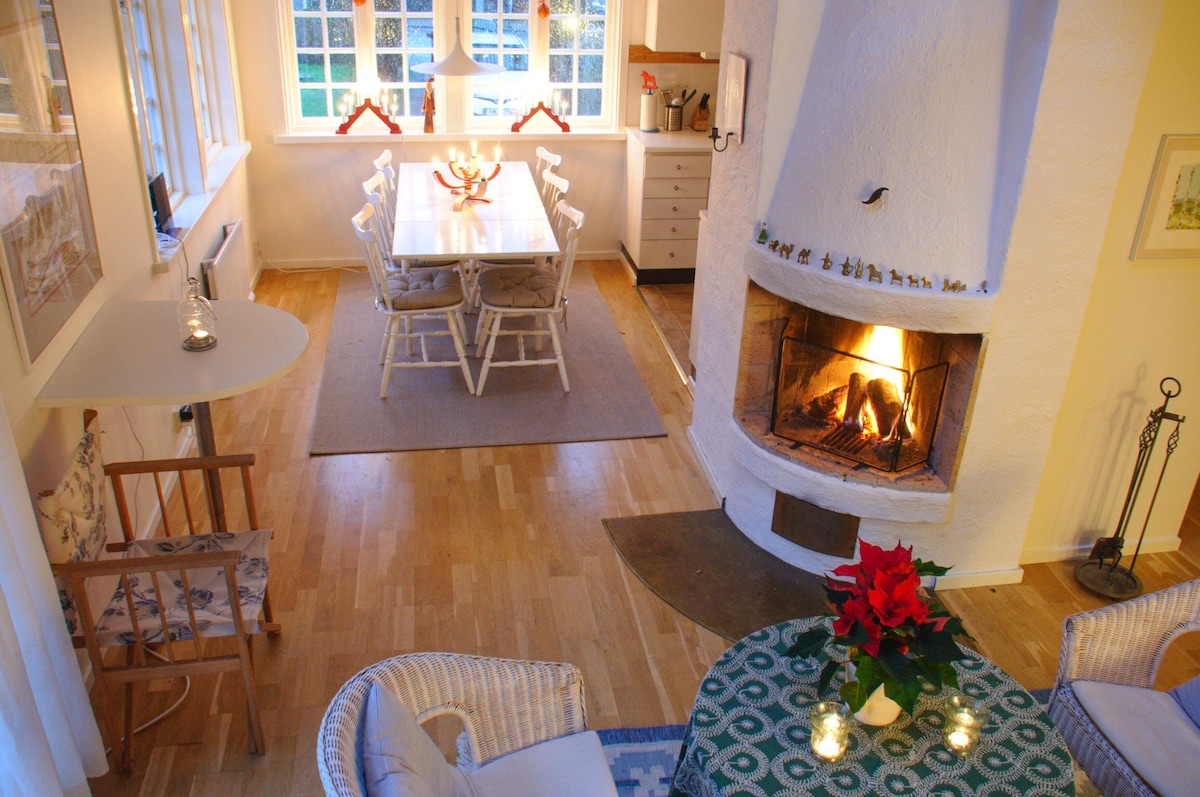 Ett rymligt och fullutrustat semesterhus som fungerar lika bra på sommaren som på vintern. Öppen planlösning med öppen spis matdel, och TV-hörna på ovanvåningen. Två sovrum gör det idealiskt för fyra personer med möjlighet till en extrabädd på ovanvåningen (tillägg per natt tillkommer för extrabädd). Vi erbjuder normalt inte lakan eller handdukar, men kan erhållas mot extra avgift av 200kr per gäst.