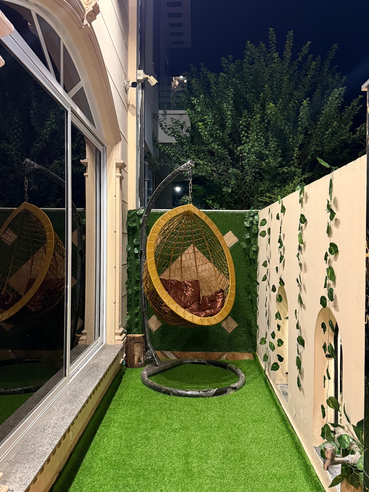 Nasz apartament z 1 sypialnią w DHA Phase 5 to miejsce, w którym miejski szyk spotyka się z niebiańskim stylem. Pomyśl o ścianie w księżycowy wzór, która będzie idealna na nocne selfie, albo o dziele sztuki przedstawiającym stos dolców, które wyraźnie mówią: „to ja jestem tu bohaterem”. Obudź się z widokiem na park z prywatnej huśtawki na balkonie, obejrzyj swoje ulubione programy na 50-calowym telewizorze 4K Smart TV lub ugotuj coś estetycznego w w pełni wyposażonej designerskiej kuchni. Wnętrza? Abstrakcyjne, stylowe i stworzone z myślą o feedzie. Poza tym jesteś tuż obok najgorętszych lokali gastronomicznych w Lahore.