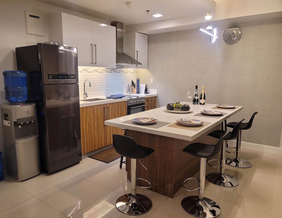 – Luksusowe mieszkanie w sercu Cebu naprzeciwko Ayala Center Cebu - Świetne udogodnienia, takie jak baseny, basen dla dzieci, fontanna wodna i jacuzzi, siłownia, sala bilardowa, studio tańca, plac zabaw dla dzieci, sala konferencyjna i wiele innych - Dostęp do tarasu na dachu ze wspaniałymi widokami na Cebu City - W odległości spaceru od centrum handlowego Ayala Center Cebu - Szybki Internet z 50-calowym telewizorem Smart TV, Netflix, Disney+, YouTube i innymi dostępnymi usługami. - Spokojne otoczenie z łatwym dostępem do wszystkich głównych obiektów.