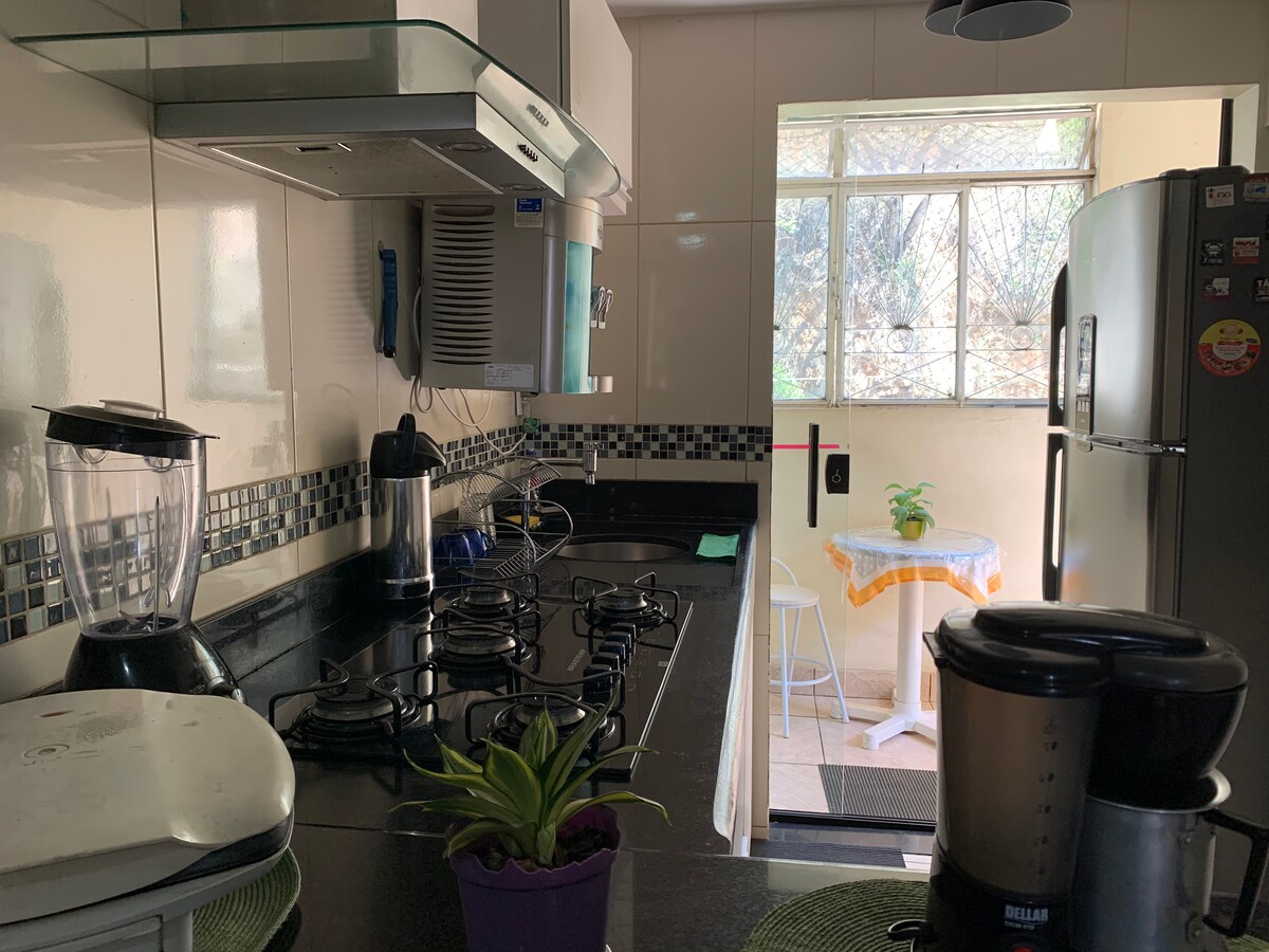 Nowość: zapłać w maksymalnie 6 ratach bez odsetek. Zrelaksuj się z całą rodziną w tej cichej, spokojnej dzielnicy, w pobliżu wszystkiego. Całkowicie zmontowana klimatyzacja w pokoju apartamentowym (para), naczynia kuchenne, ręczniki, pościel, koce, wszystko, czego potrzebujesz podczas pobytu. 250 metrów od piekarni, supermarketu, apteki, siłowni, restauracji itp. 1 km od centrum miasta. Łatwy dostęp do Faminas College i Hospital do Câncer Fundação Cristiano Varella.