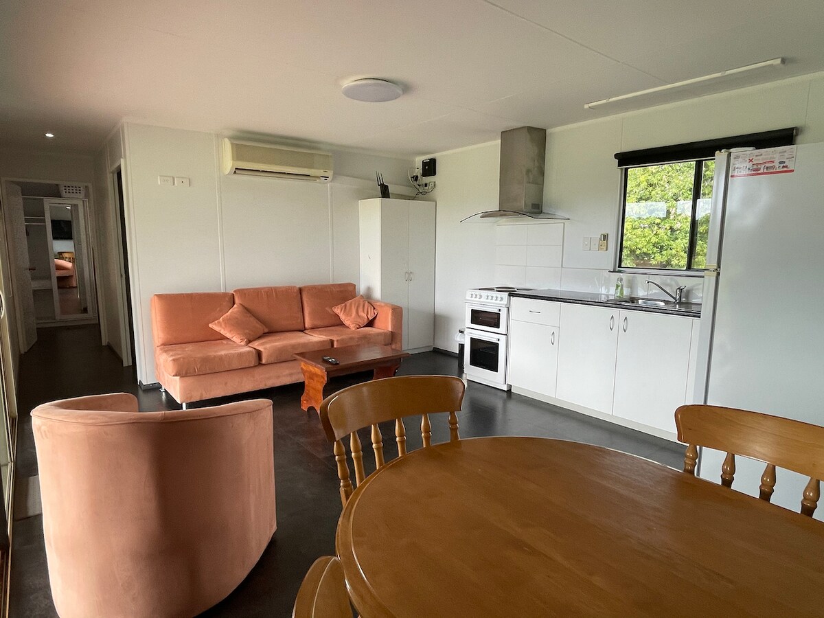 Witamy w naszym zacisznym domku położonym zaledwie 5 km od centrum Kununurry, ale czujesz się, jakbyś był 1000 mil stąd, otoczony rodzimymi drzewami, walabiami i ptakami. Masz wszystko, czego potrzebujesz, aby poczuć się jak w domu. Wewnątrz klimatyzowanej kryjówki znajduje się aneks kuchenny i luksusowa łazienka. Na zewnątrz znajduje się w pełni wyposażona kuchnia z frytkownicą, płytami grzewczymi, grillem, a nawet wolnowarem. Będziesz mieć własny zadaszony parking i pralnię.