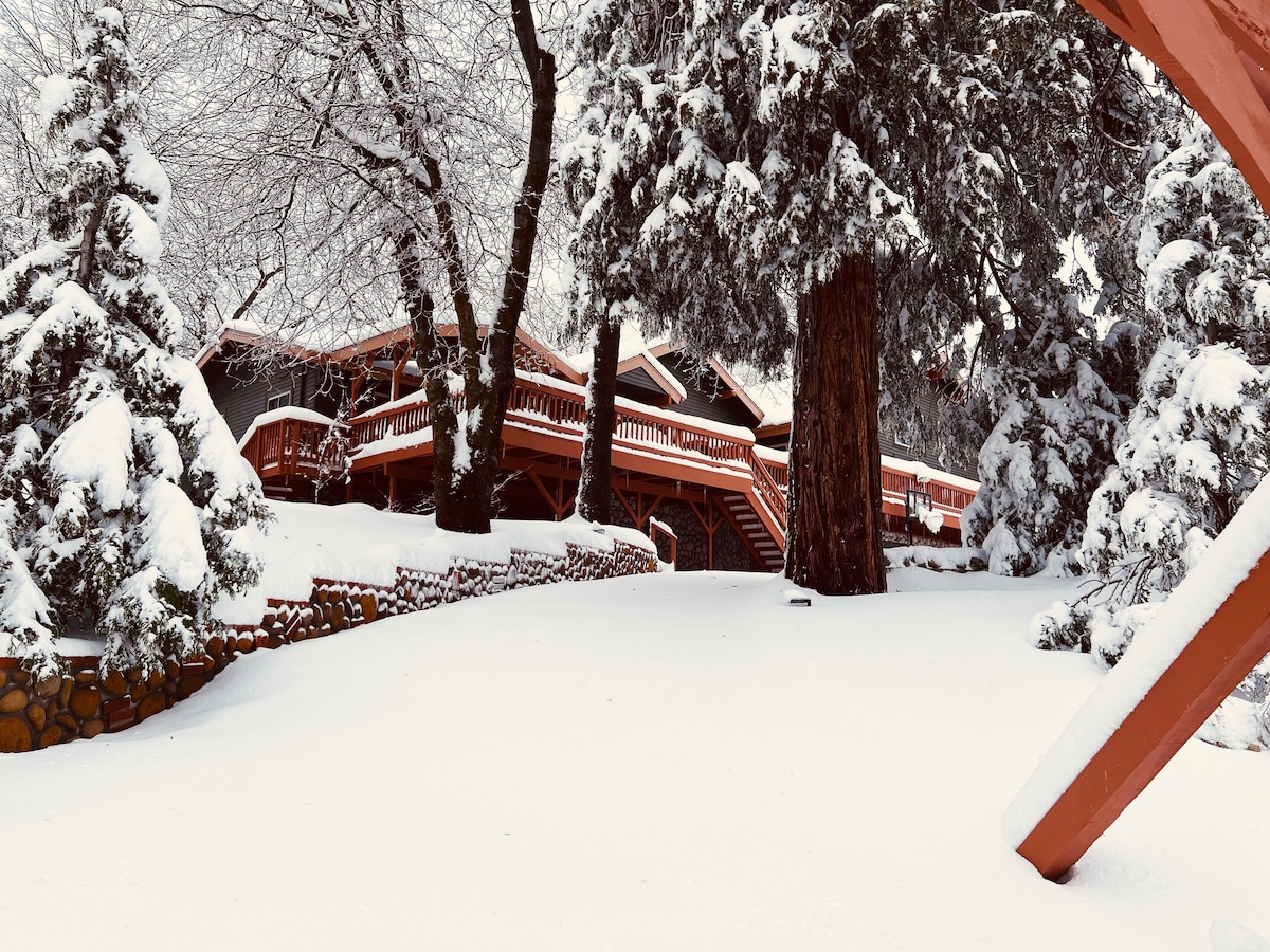 W tym domu znajdziesz wszystko, czego potrzebujesz dla 1, 2 lub 3 rodzin, aby spędzić razem czas lub na relaksujący wypad. Ginormalna przestrzeń mieszkalna z 20-stopowymi sufitami i 4 wentylowanymi świetlikami, widokiem na jezioro, stołem bilardowym, 2 dużymi inteligentnymi telewizorami i wielkim kominkiem. Górny taras ma duży stół, grill i wygodne miejsca do siedzenia. 2 połączone lofty z piłkarzykami, salonem gier i mnóstwem gier. Dodaj miejsce na piłkę, aby ten dom stał się spełnieniem marzeń dziecka. Szybka przejażdżka do Sky Park lub Snow Valley. Big Bear jest tylko 45 minut drogi stąd.