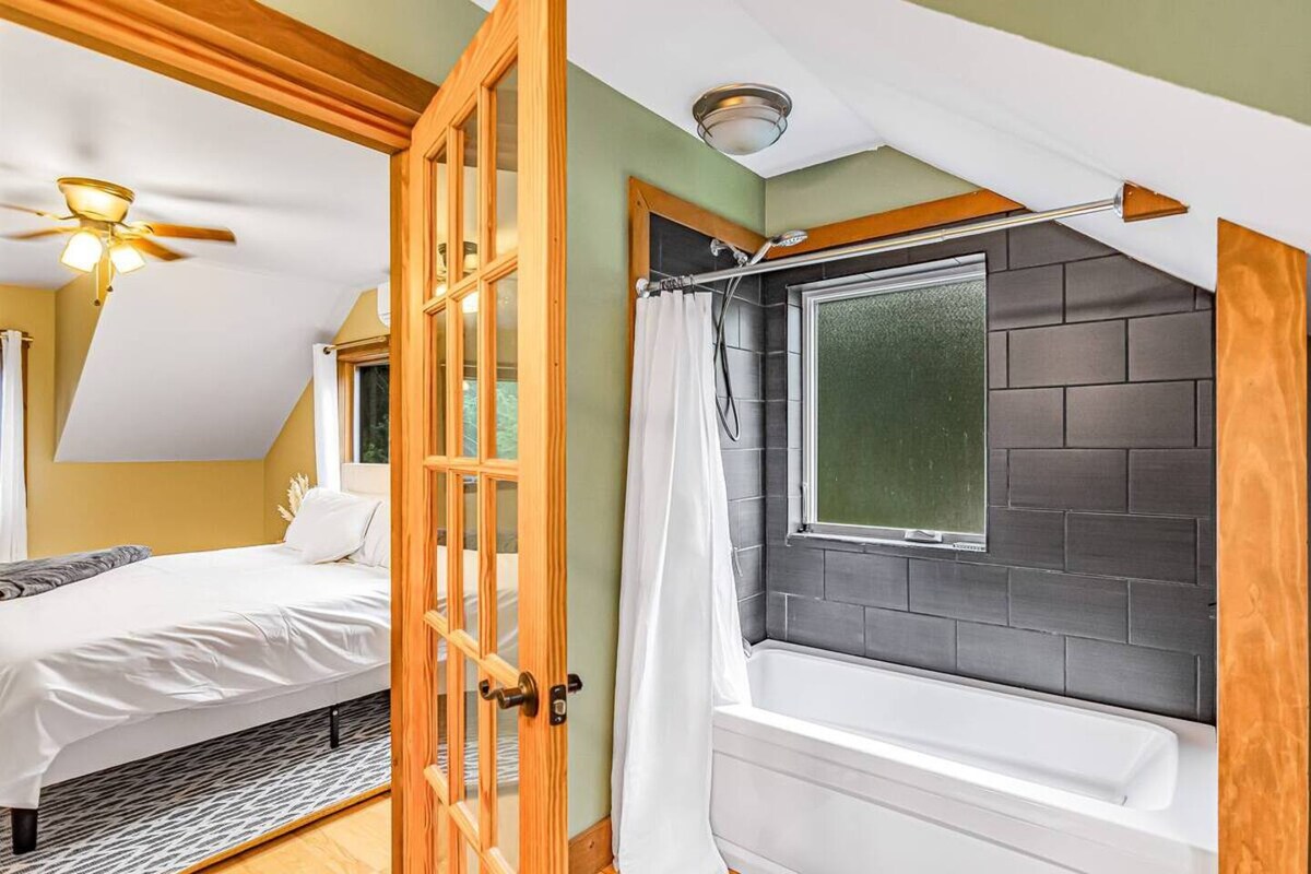 Poczuj się komfortowo i spokojnie w naszym przytulnym, ale pełnym światła pokoju gościnnym z własnym wejściem i przestronną łazienką. Jest dobrze wyposażony w antyki, ręcznie rzeźbione łóżko typu queen i dużą kolekcję eklektycznych książek, które zachęcamy naszych gości do zabrania do domu. Brak telewizora, ale prędkość Internetu jest duża, a wędrówki po farmie i lesie lub czytanie ciekawej książki to świetne alternatywy. Zobacz sekcję Inne szczegóły do odnotowania.