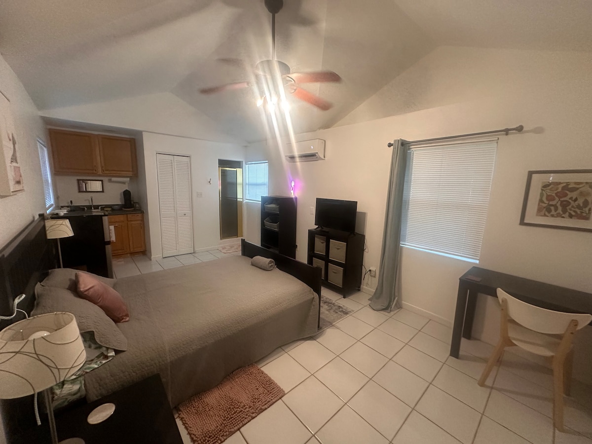 Ta relaksująca przestrzeń z 1 łóżkiem i 1 łazienką w centrum Orlando oferuje bujne ogrodzone podwórko, wannę z hydromasażem i w pełni wyposażoną kuchnię. Szczycimy się naszym studio, które oferuje komfort, dobre samopoczucie i delikatną dbałość o szczegóły, aby doświadczyć magii modnej przestrzeni w samym sercu Orlando. Ciesz się nowym remontem, meblami i urządzeniami. To tylna część nieruchomości składającej się z 2 jednostek. Oferujemy: Telewizor ✅50" ✅Luksusowy materac ✅Wi-Fi światłowodowe ✅Kawa i herbata bezkofeinowa ✅Disney Plus, Hulu, Max, Netflix ✅ Darmowy parking