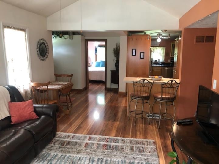 Przyjedź i doświadcz wszystkiego, co nasze małe rodzinne gospodarstwo ma do zaoferowania. Rozpocznij dzień od porannej kawy na prywatnym patio z widokiem na gaj orzechowy. Wybierz się na spacer po naszym 9-akrowym sadzie jabłkowym i ciesz się wiejskim stylem życia, który oferuje nasza farma. Jedna sypialnia z łóżkiem typu king i jedna sypialnia z dwoma łóżkami podwójnymi.