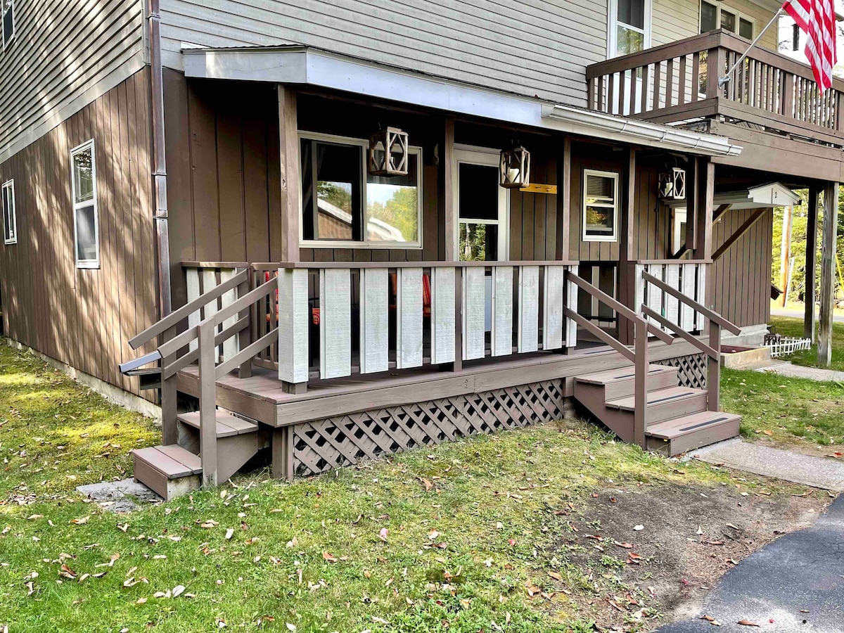 Location is everything in this cozy, quiet and affordable two-bedroom unit, located adjacent to Lake Flower and only 10 minutes from Lake Placid. Couples, solo travelers and small families can explore the ADKs and enjoy an easy walk to great restaurants, bars, marinas, boat/kayak rentals and fishing. Just steps from the door you’ll access the newly expanded ADK Rail-trail to bike, hike or snowmobile. The Winter Carnival Ice Palace and village fireworks can be viewed from the enclosed porch.