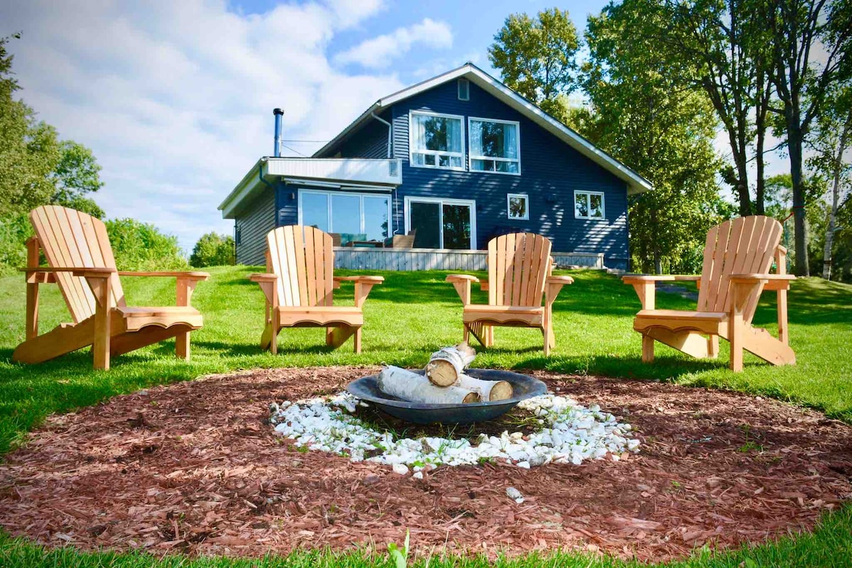 High bluff infinity view overlooking Lake Huron. You’ll love your stay because of the perfect balance of outdoor activity and opportunity to commune with nature. Amenities include two kayaks, a large outdoor fire pit, indoor fireplace, private beach, and nearby harbor towns to explore. Good for couples and solo adventurers, this knotty pine, high ceiling cottage house on Lake Huron has a full kitchen with beautiful quartz countertops, and French doors to the bedroom.