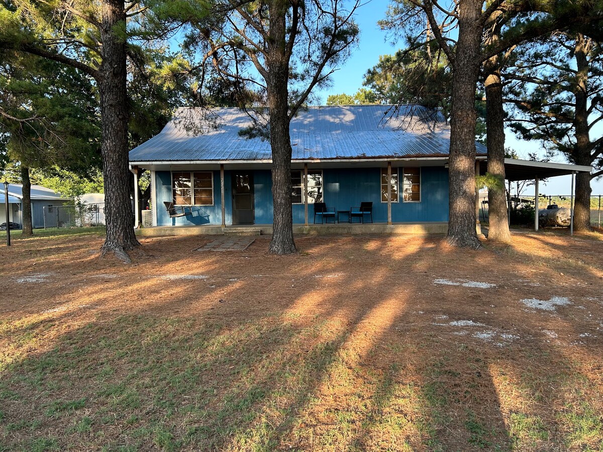 Escape to our charming cabin on 2 acres near Lake Texoma! Perfect for families or friends, it features 1 private bedroom, plus a loft and additionally sleeping spaces for 9, a fully equipped kitchen, cozy living space, and games. WiFi and a smart tv is available inside or unplug and enjoy hammocks, picnic tables, a firepit, and outdoor fun. Minutes from fishing, beaches, marinas, golf, restaurants, and casinos. Self check-in, parking, and a local guidebook make your stay easy and memorable.