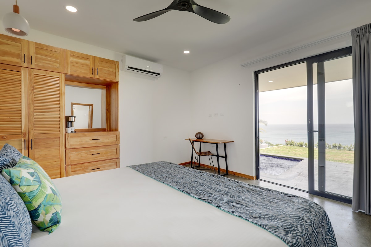Zapytaj o specjalne stawki tygodniowe i miesięczne! Pobyt w naszym luksusowym apartamencie podniesie Cię na duchu i naładuje energią dzięki zapierającym dech w piersiach widokom na ocean z hipnotyzującymi zachodami słońca, przestronnemu tarasowi z prywatnym basenem bez krawędzi i wysokiej klasy wystrojowi wnętrz. Główna sypialnia wyposażona jest w najwyższej klasy łóżko typu king-size zapewniające najwyższy komfort. Zamknięta społeczność oferuje klub z basenem, barem z przekąskami, siłownią, przestrzenią do wspólnej pracy z szybkim internetem i generatorem zapasowym. 10 minut spacerem do miasta.