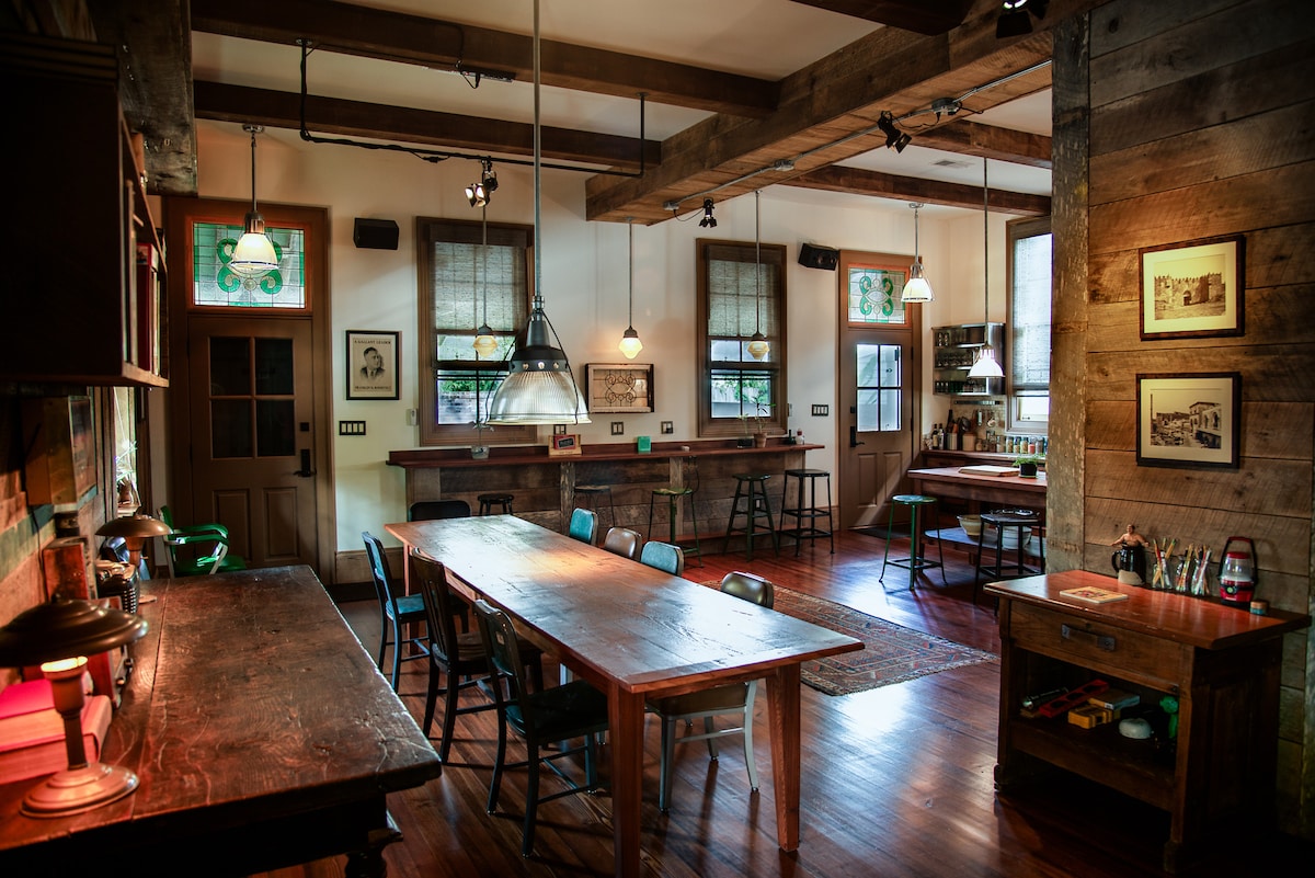 Prywatne pokoje gościnne obejmują 4 sypialnie i 5 łazienek, 14-stopowe sufity, stare kominki, drzwi kieszonkowe i balkony. Eklektyczny i wyjątkowy pobyt, który oddaje ducha starego Nowego Orleanu. Żywe kolory i mieszanka starannie dobranych antyków z odrobiną nowoczesności, przestronne wnętrza zapewniają nowoczesne udogodnienia i w pełni zaopatrzoną kuchnię. Nasz ogrzewany basen z solą jest otoczony bujnymi ogrodami tropikalnymi i tarasami z wieloma miejscami do siedzenia i leżakami.