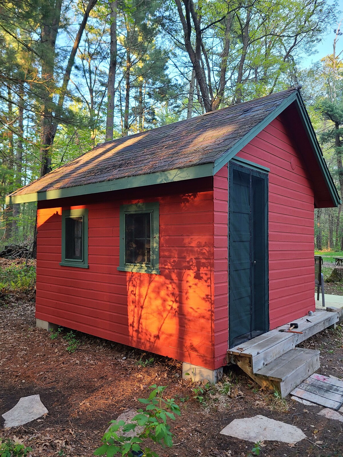 Enjoy our 1 bd/1 ba cabin! It has a full kitchen, screened porch, washer/dryer & shares a 4-acre wooded lot with the adjacent Clubhouse with a stretching/exercise room, outdoor hot tub & barrel sauna you can use. The lot has a private tennis court & 1/4 mile walking trail. Nice streets to walk or ride in the neighborhood, and downtown Nisswa and the Paul Bunyan Trail are a short 1 mile walk, bike ride or drive away. DOG FRIENDLY! The cabin is professionally cleaned between every reservation.