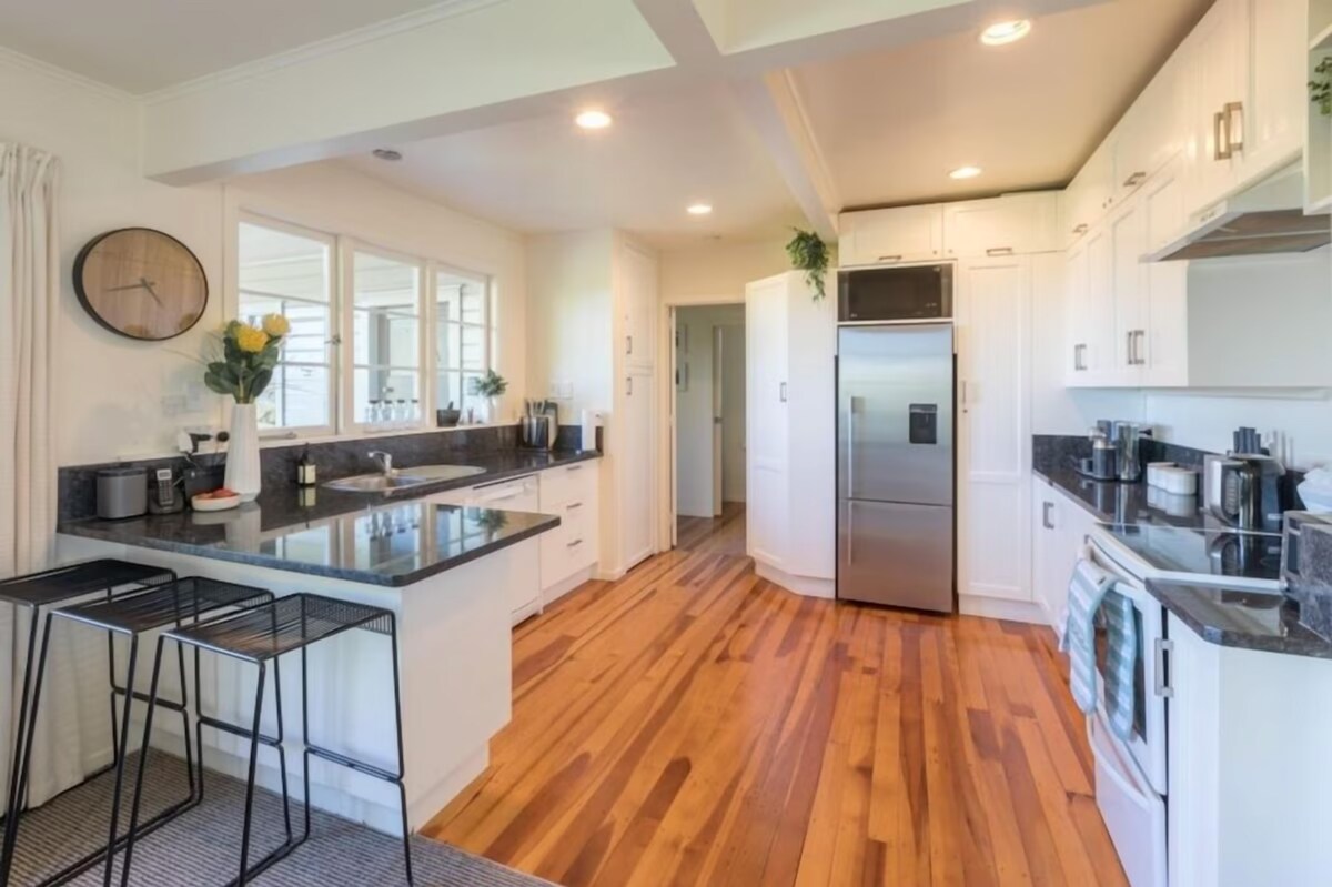 Ten architektonicznie zaprojektowany bach cieszy się prywatnym, słonecznym aspektem, z którego roztacza się wspaniały widok na jezioro Rotoiti. Znajduje się w cichej ulicy otoczonej drzewami. Funkcje obejmują: pełne słońce, północny taras z grillem i widokiem na jezioro, podwójne przeszklenia, pompę ciepła, drewniany ogień, pełną kuchnię ze zmywarką, duży piekarnik, płyty gazowe i kuchenkę mikrofalową. Przywieź łódź, aby złowić pstrąga, wybrać się na wycieczkę nad jezioro lub po prostu popływać po jeziorze.