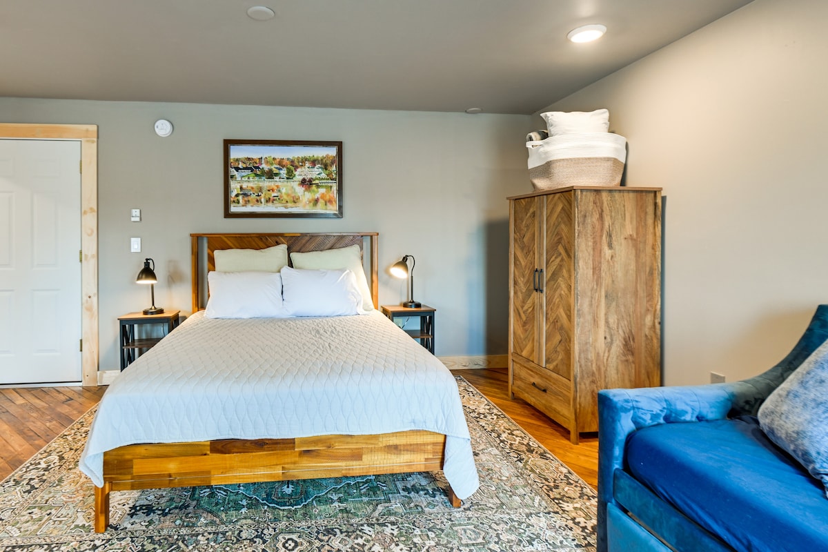 TYLKO 2 GOŚCIE – brak materacy dmuchanych 14,5 mili do ośrodka narciarskiego Gunstock, 24 mile do ośrodka narciarskiego Wolfeboro Abenaki, 39 mil do ośrodka Loon Mountain. 1,2 mili do zatoki, sklepów, restauracji, kina i sklepu spożywczego. 5 min. (1,8 mili) do Church Landing, 18 min (9,6 mili) do Bank of NH Pavilion. Plaża w odległości spaceru / krótka przejażdżka do publicznej plaży.