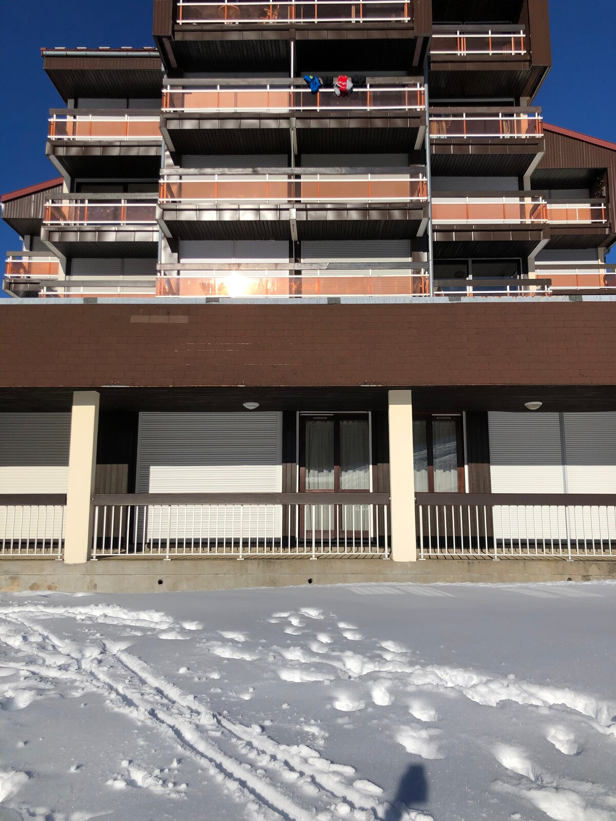 Studio 25 m2 na parterze w kurorcie cichy, lokalny dozorca sypialnie 4 dwa wejścia francuskie drzwi do bezpośredniego dostępu do stoków 50 m od sklepu sportowego, wypożyczalni sprzętu, szkoły narciarskiej, restauracji darmowy autobus narciarski 5 min do Lamoura 10 min od Les Rousses Darmowy parking kliknij clac 2 osoby nowe 2 łóżka Łazienka z toaletą, aneksem kuchennym Tradycyjny piekarnik, kuchenka mikrofalowa, lodówka, ekspres do kawy, toster, raclette, ekspres do naleśników, gry, telewizor, DVD Wi-Fi Prywatna sala narciarska