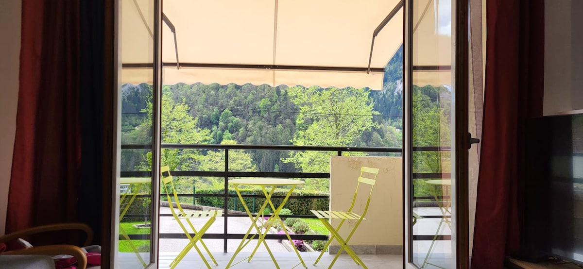 Odnowione, jasne studio nad brzegiem rzeki i lasu. Znajduje się 12 km od granicy szwajcarskiej i stoków narciarskich, Fort des Rouss. W pobliżu znajduje się hodowla ryb, a także udogodnienia (pralnia z detergentem, Aldi, Lidl, Intermarché, centrum miasta, rynek...) oraz via ferratta de la roche au Dade (5 km). Uwaga: łóżko na antresoli (nieodpowiednie dla osób cierpiących na klaustrofobię: materaca nie można przenosić z antresoli), wysokość pod antresolą 1,82 m (łazienka, blat kuchenny).