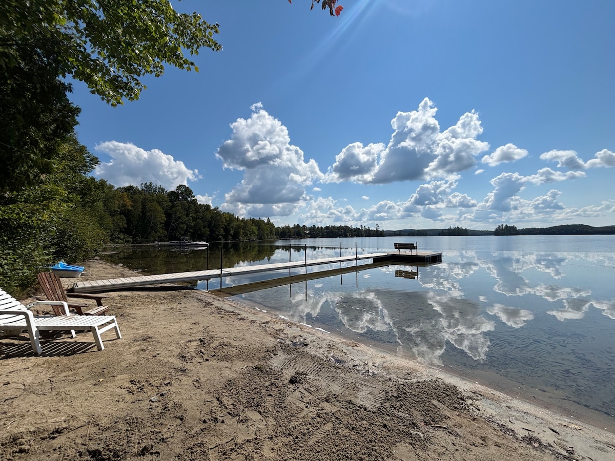 Permis CITQ 302145 Duży rustykalny domek z widokiem na zatokę, las za sobą, spokój. Przytulna, spokojna i bez domku sąsiadów. Duży kominek i piec opalany drewnem, katedralny salon na dachu. Latem:spacer po kilku minutach na skraj dużego kryształowego jeziora, prywatna piaszczysta plaża, dok, 2 kajaki, pedał (łódź wiosłowa w naprawie). Wędkarstwo pstrągów. Malowniczy widok, niezwykłe zachody słońca. Grill propanowy, kominek na zewnątrz (jeśli jest to dozwolone).