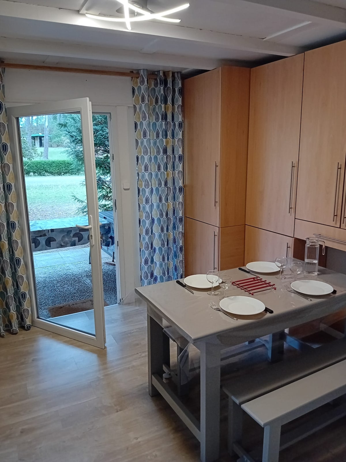 Drewniany dom z dużą sypialnią z podwójnym łóżkiem 140 x 200, miejscem do pracy, małą jadalnią, aneksem kuchennym, łazienką z prysznicem, tarasem i małym ogrodem. Bardzo ciche miejsce na końcu ślepej uliczki w dzielnicy, w pobliżu plaż Seignosse, Hossegor, Capbreton... W pobliżu pola golfowe, Bayonne 30 minut drogi, granica hiszpańska 45 minut drogi i u bram kraju Basków.
