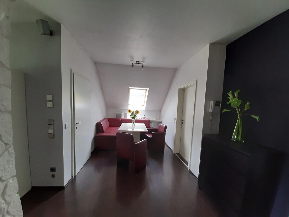 Zentral und Nähe Wald, Park, Resaurants, Konferenzhotel. 7 Minuten zur Auffahrt A4. 65 m2 mit Fußbodenheizung, ebenerdige Dusche, Kaffeevollautomat, 52 Zoll Flatscreen.
