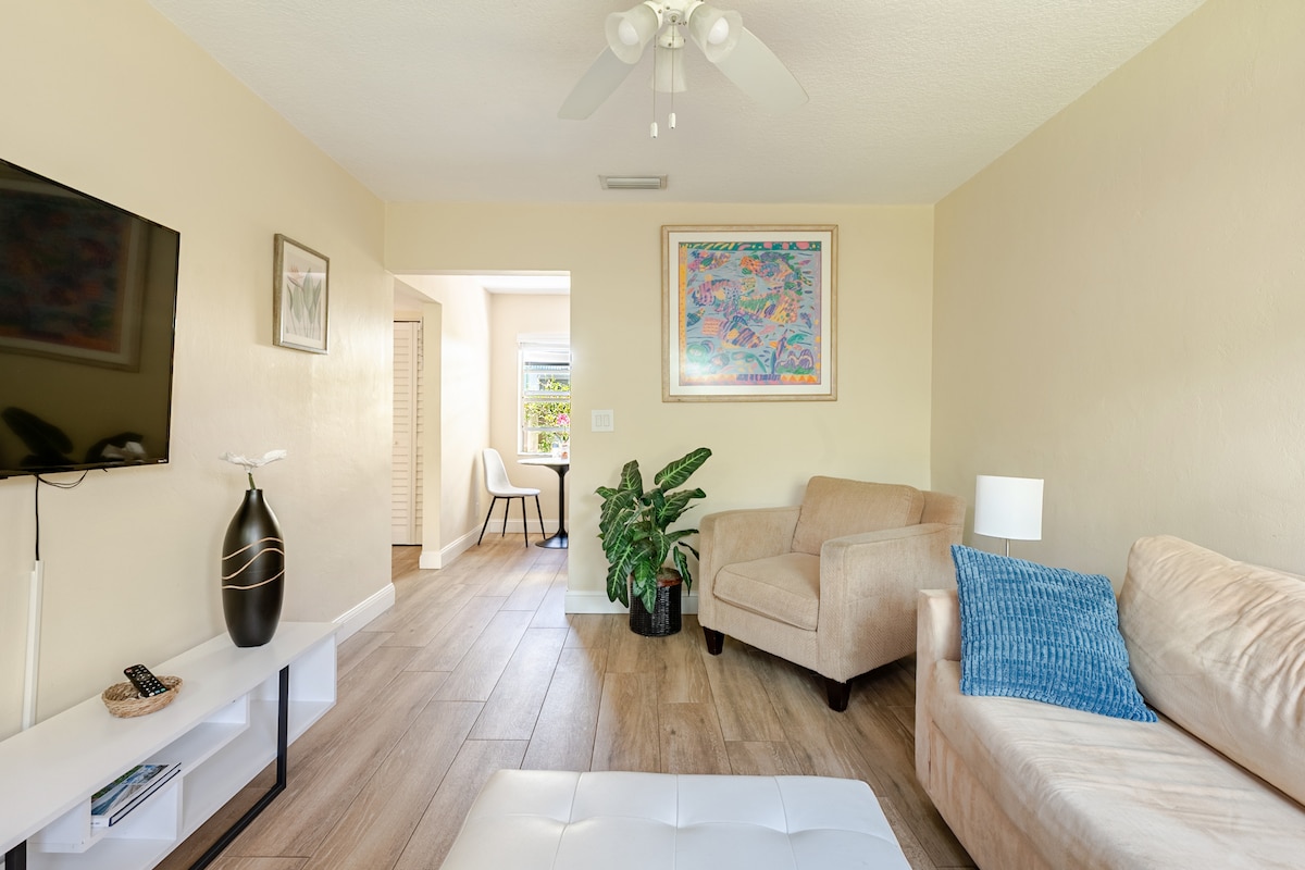Jedna sypialnia, jedna łazienka, apartament z Sofabed w salonie. Mniej niż 2 mile od Lake Worth Beach i w odległości spaceru do Bryant Park i Downtown Lake Worth, w centrum miasta znajduje się wiele restauracji i sklepów. Udogodnienia na plaży obejmują: krzesła, parasol, lodówkę plażową i ręczniki. Kuchnia ma wszystko, co niezbędne do przyrządzenia dobrego posiłku, ogrodzonego podwórka i ogrodzonego podwórka, Hulu, Netflix, szybki internet i bezpłatny parking.