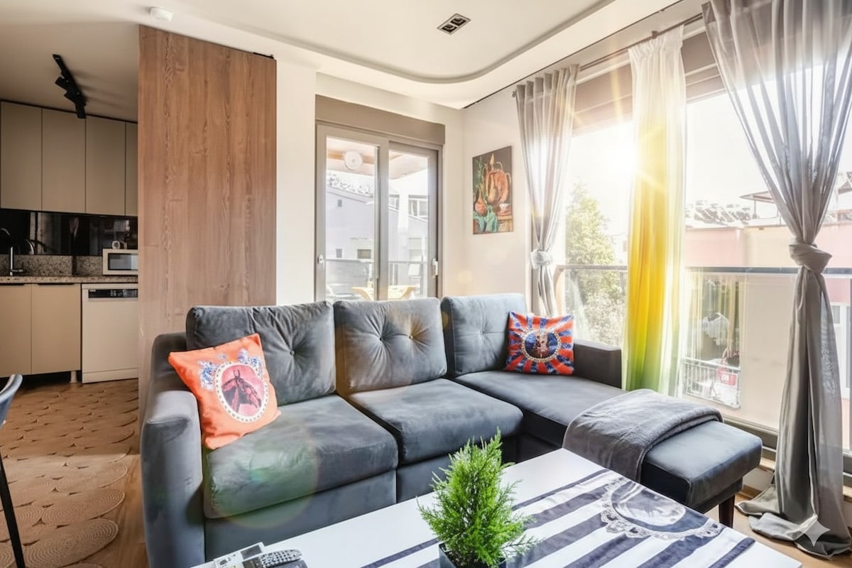 Apartament Suite, z którego roztacza się wyjątkowy widok na Morze Śródziemne, oferuje komfort domu dzięki sypialni, salonowi i kuchni ze stołem barowym. W naszych apartamentach 1+1, które mają powierzchnię 39-41 m², mogą mieszkać maksymalnie 3 osoby. Apartamenty te oferują przyciągającą wzrok prostotę dzięki stylowemu i nowoczesnemu wzornictwu, a wyposażenie domu jest przemyślane w najdrobniejszych szczegółach. Z otworem, aby cieszyć się Morzem Śródziemnym i specjalnymi usługami podczas pobytu, gdzie poczujesz komfort Let'stay na każdym metrze kwadratowym.