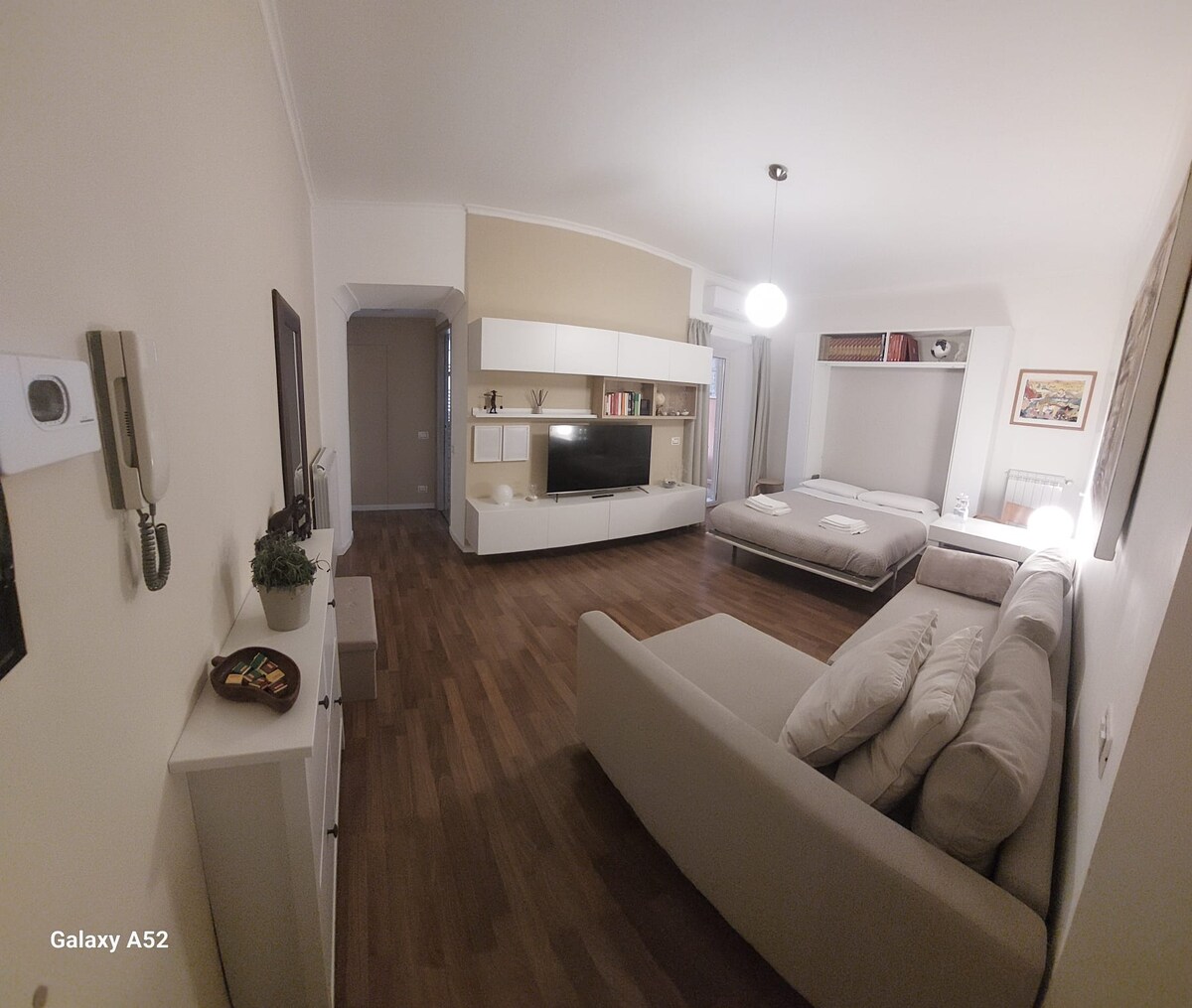 Mały niezależny apartament, położony na parterze willi z prywatnym wejściem i strzeżonym parkingiem. Wyposażony w podwójne łóżko, salon z sofą, kuchnię z piekarnikiem, lodówkę i kuchenkę z 4 palnikami. Jest pralka, deska do prasowania i żelazko. Łazienka jest wyposażona w przestronny prysznic. Na zewnątrz małego salonu znajduje się mały i wygodny taras.
