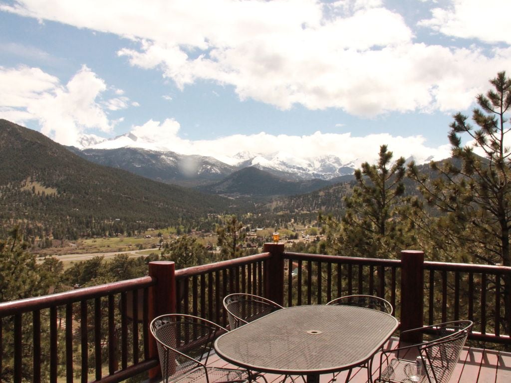 Mont Blanc Chalet perches majestically above the town of Estes Park, Colorado, gateway to Rocky Mountain National Park. With extraordinary sweeping views of Long's Peak and the entire Continental Divide, this luxury log home affords guests the grandiose seclusion of a mountain hideaway, but with the convenience of an in-town location. You won't find a better view in Estes. It's also about one mile from the park entrance and minutes to Elkhorn Drive. WE DO NOT ALLOW WEDDINGS OR EVENTS.