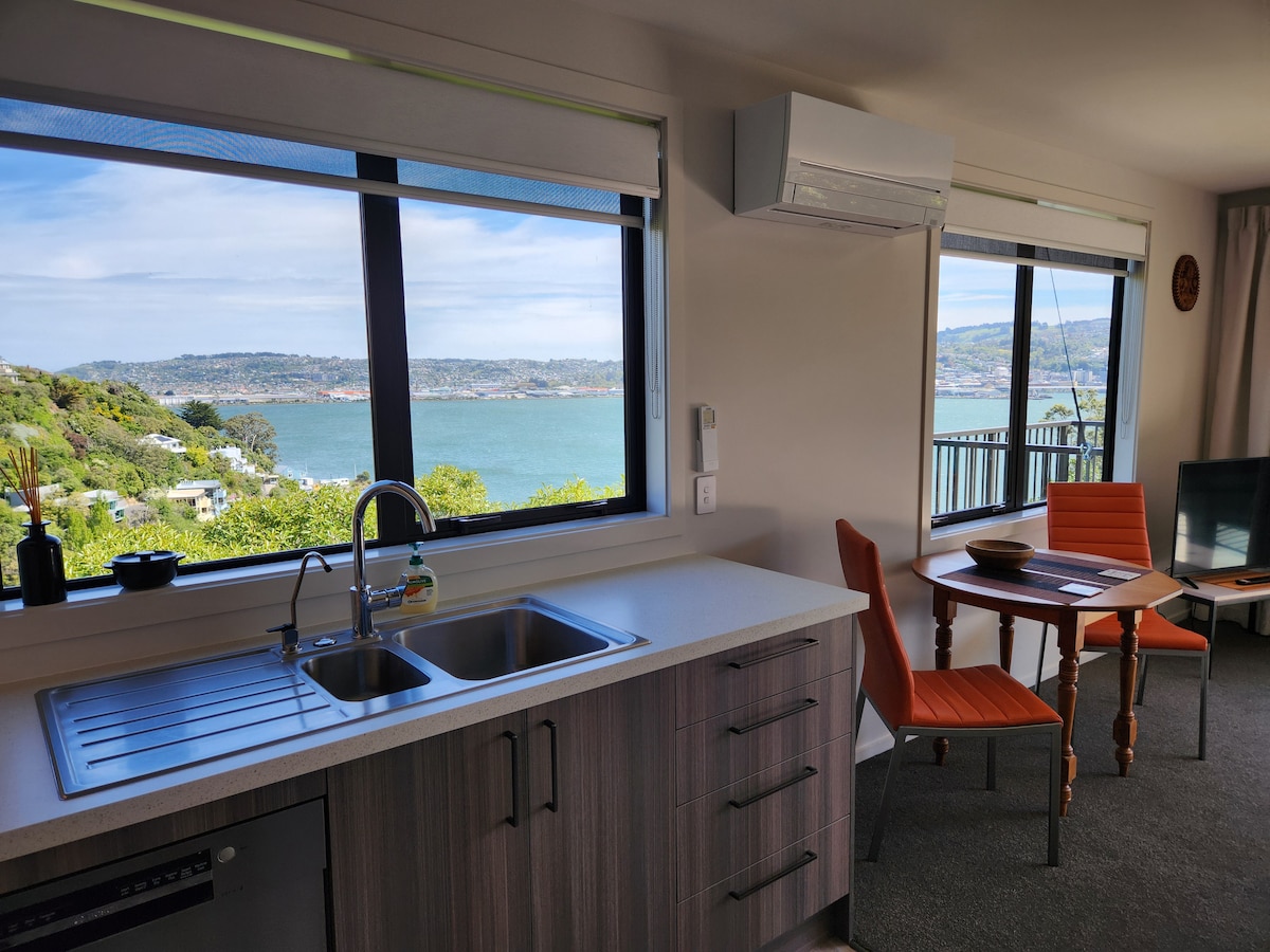 Chcesz budzić się z oszałamiającymi widokami? Cicha i relaksująca przestrzeń? ...znalazłeś MacStay! Nasze wypełnione słońcem studio (22 m2) jest zaprojektowane architektonicznie i ma czynnik „wow”. Obudź się na śpiew ptaków i ciągle zmieniającej się scenerii portowej. W pięknej zatoce Macandrew, na oszałamiającym półwyspie Otago, ale zaledwie 15 minut jazdy od miasta i 1 km spacerem do mleczarni i plaży. Prywatne wejście i taras oraz pięknie urządzony pokój i sypialnia. Przyjdź i zrelaksuj się. # # $_0A $ # #️ schody/ścieżka pod górę do wejścia