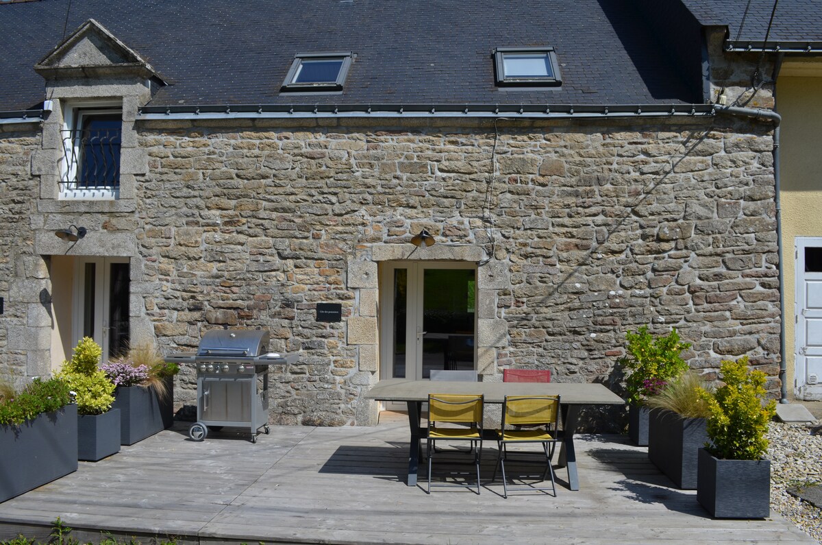 Recently renovated farmhouse belonging to Manor house by sea. Tastefully decorated by owner (painter and architect) - fully equipped with all one needs on holiday - comfortable bedrooms with en suite bathrooms, west facing terrace with barbecue, washing and washing up machines. Sunny and spacious living room. Télévision, internet, music system. The sea 3 mns walk away. Charming village with market and supermarket 4 mns drive from house. Golf course 10 mns by car.