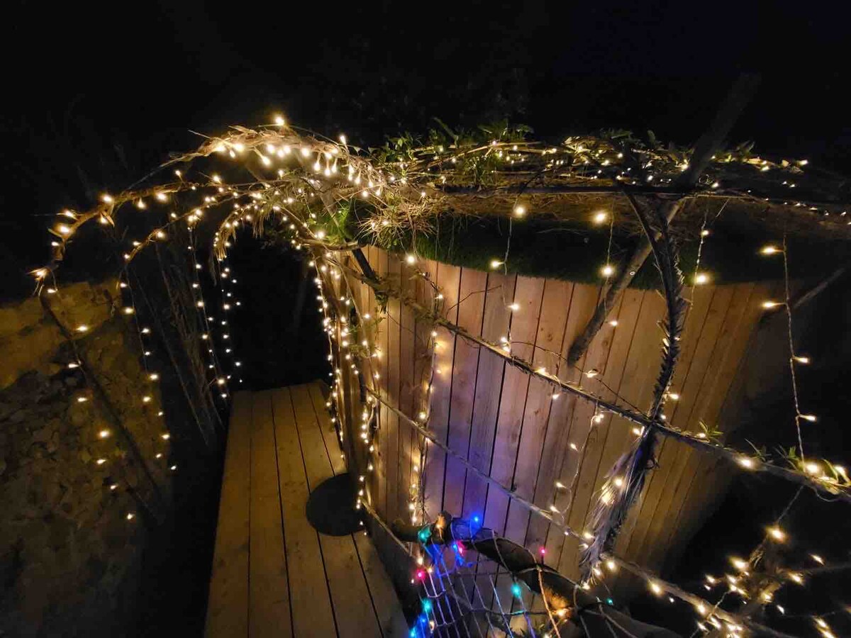 Niezwykłe zakwaterowanie w klimacie „hobbitów”, położone na końcu dzikiego ogrodu z widokiem na miasto. Dojście prowadzi przez (strome) szlaki turystyczne. W skład apartamentu wchodzi salon z kominkiem, mała kuchnia, wnęka na sypialnię, mała łazienka, taras z widokiem na dolinę i miasto (1 km), a nowością jest podgrzewana wanna na drewno (poza okresem letnim) Świece i muzyka są dostępne dla stworzenia odpowiedniej atmosfery Idealny pobyt dla par lub chwila poza czasem!