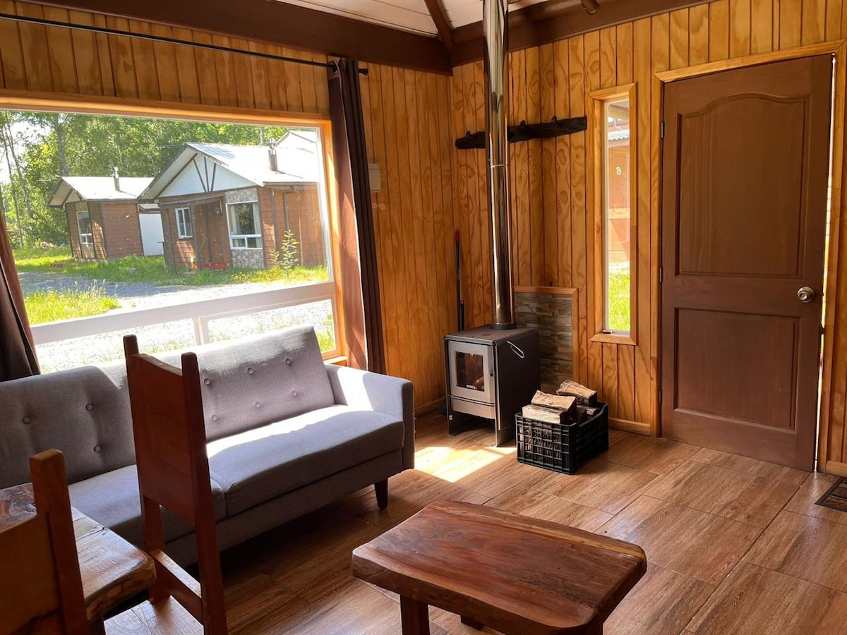 Odpocznij w naturalnym schronieniu z tinają nad rzeką w Pucón. Ta chatka, otoczona rodzimym lasem, oferuje odpoczynek i prywatność. Z tarasu słychać szum rzeki i śpiew ptaków. 📍 5 minut od plaży i 4,5 km od centrum miasta. 🏡 Wyposażone w minibar, piekarnik elektryczny, przybory kuchenne, gorącą wodę i piec opalany drewnem. 💦 Wanna z hydromasażem za dodatkową opłatą w wysokości 50 000 USD za każde użycie. ------- Tinaja, jacuzzi, chata, las, rzeka, Pucón, plaża, para, natura.
